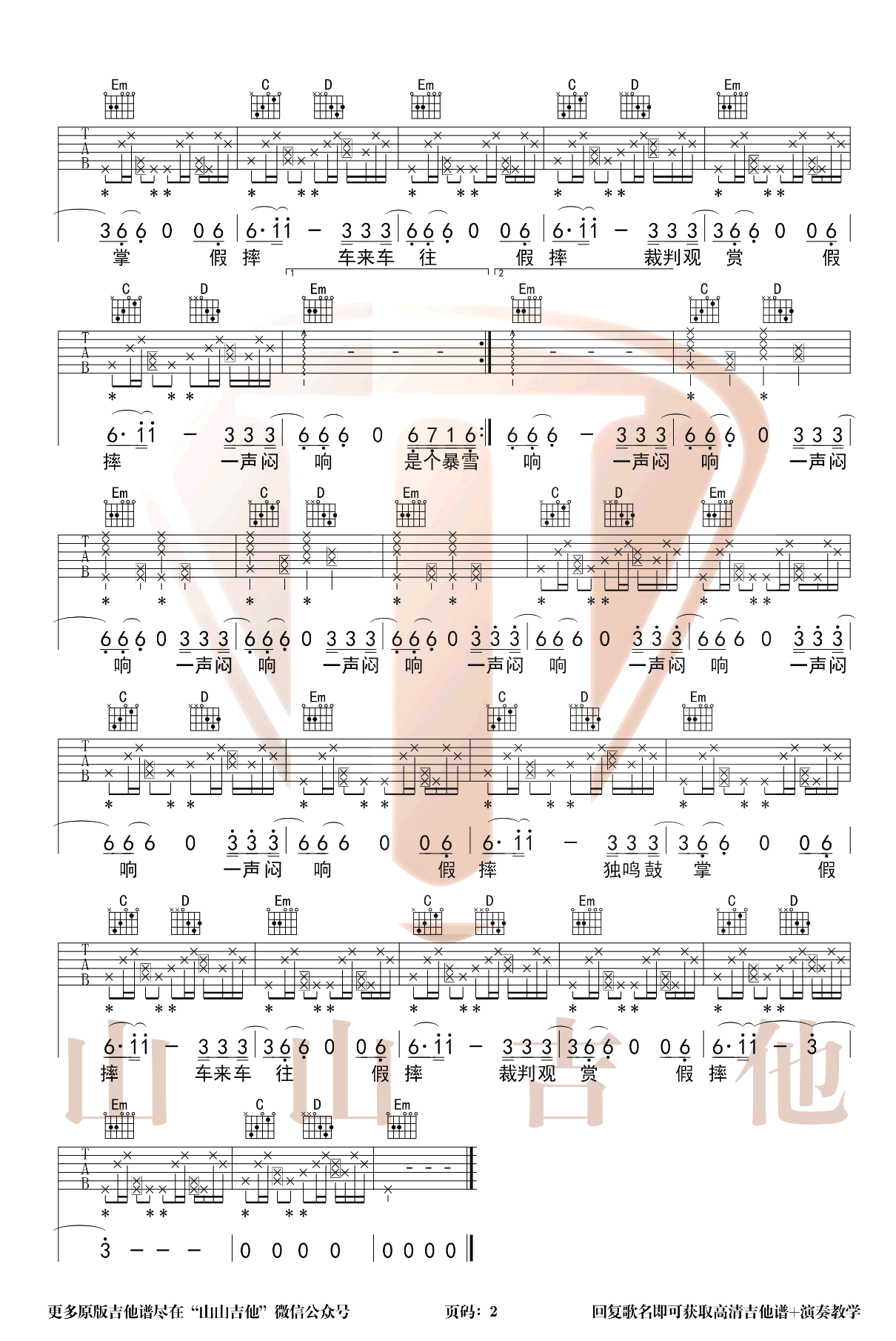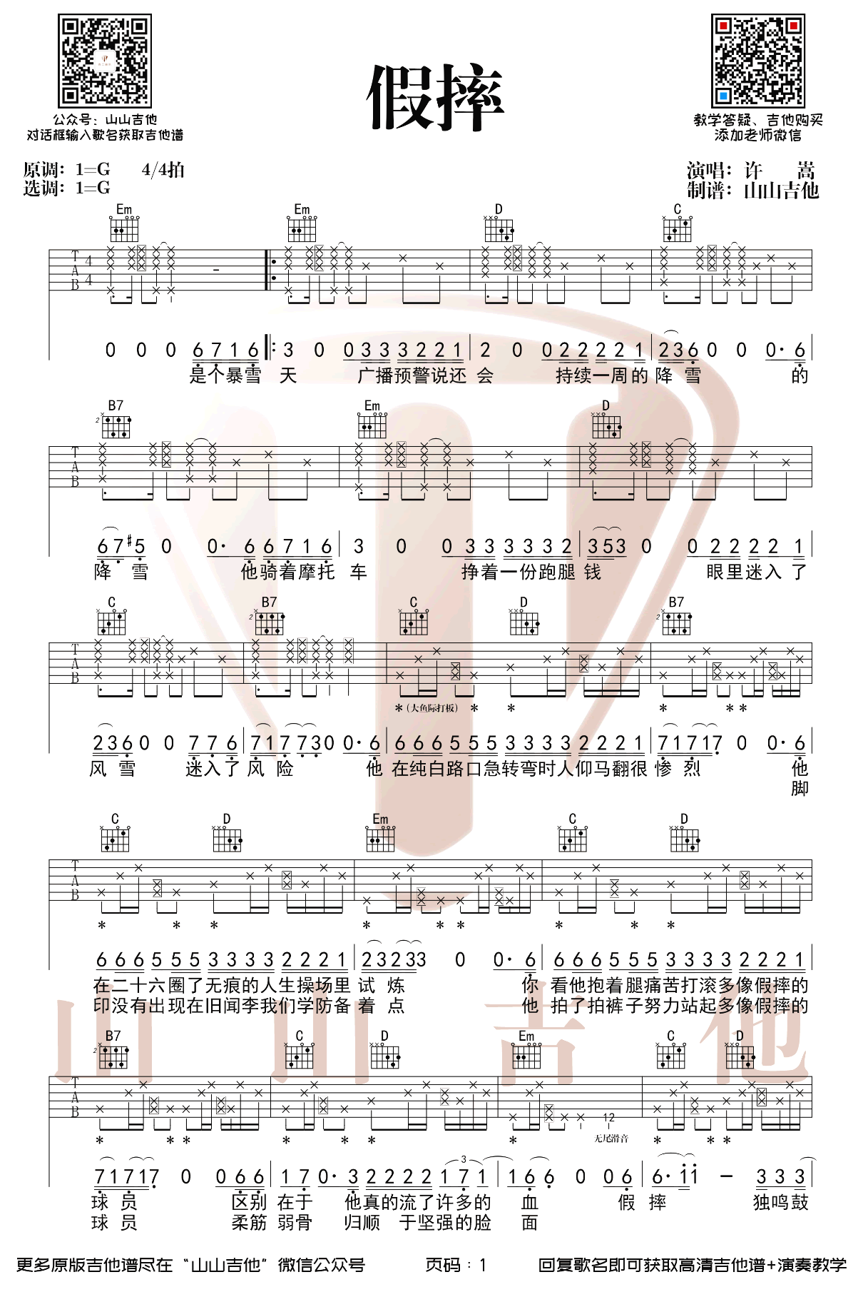 - 假摔吉他谱_许嵩_G调弹唱谱_假摔六线谱