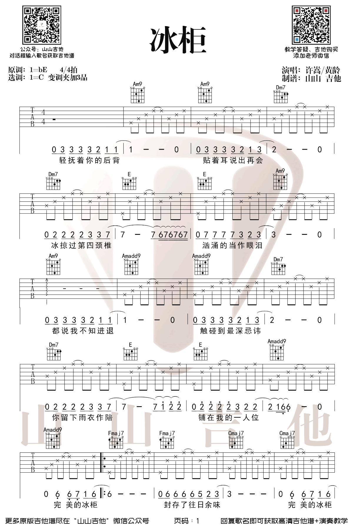 - 冰柜吉他谱_许嵩/黄龄_C调_弹唱六线谱
