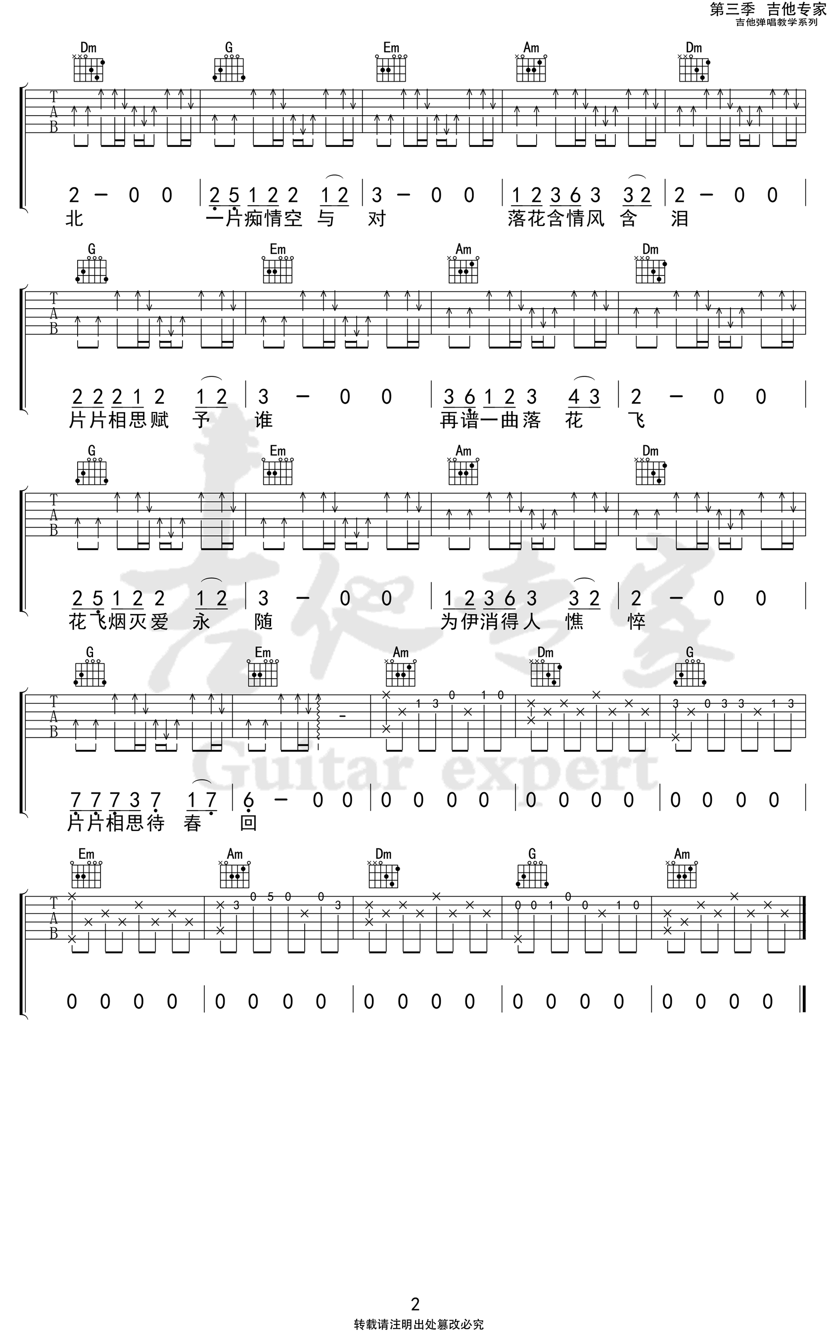 - 渐冷吉他谱_雪二《渐冷》C调弹唱_原版六线谱