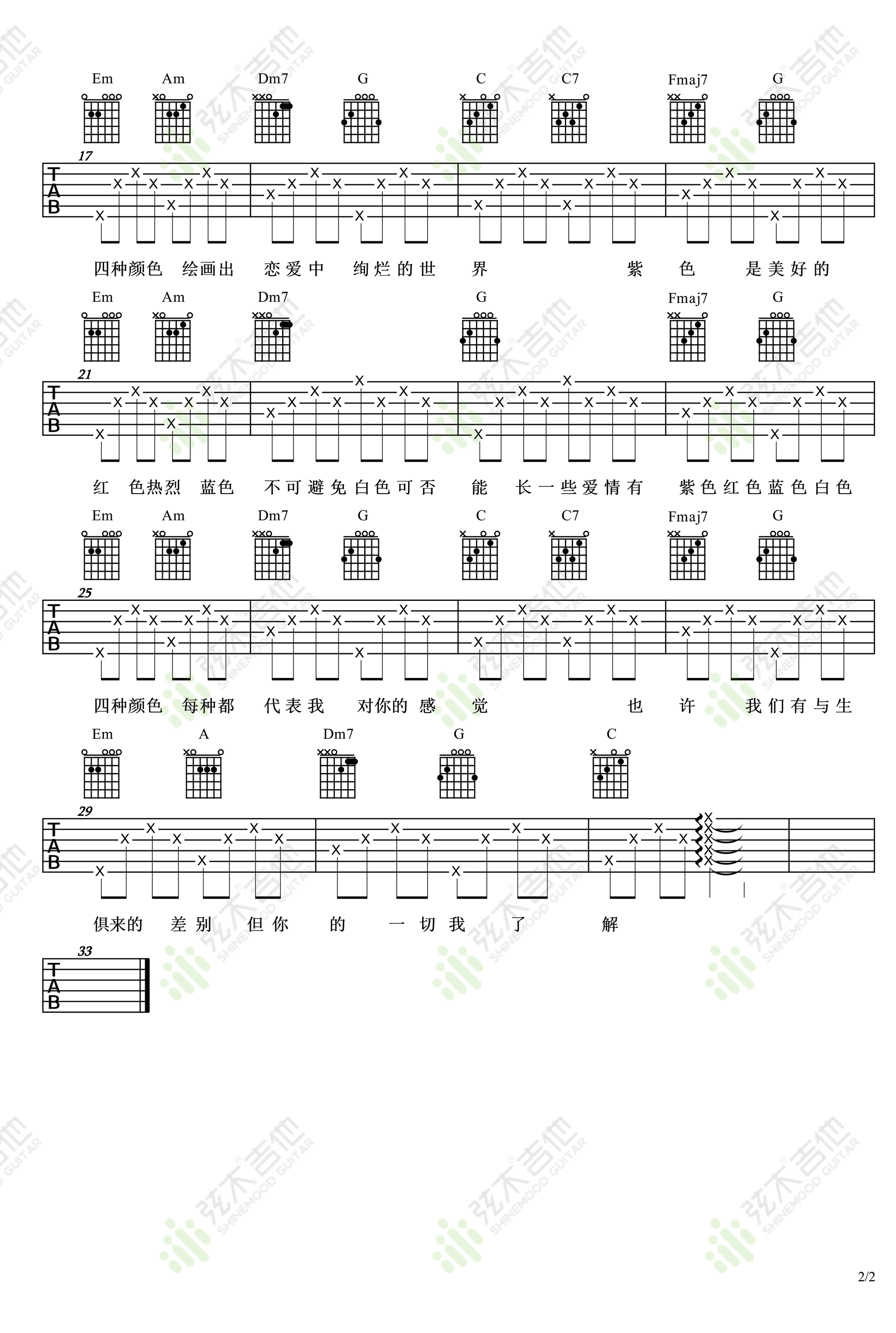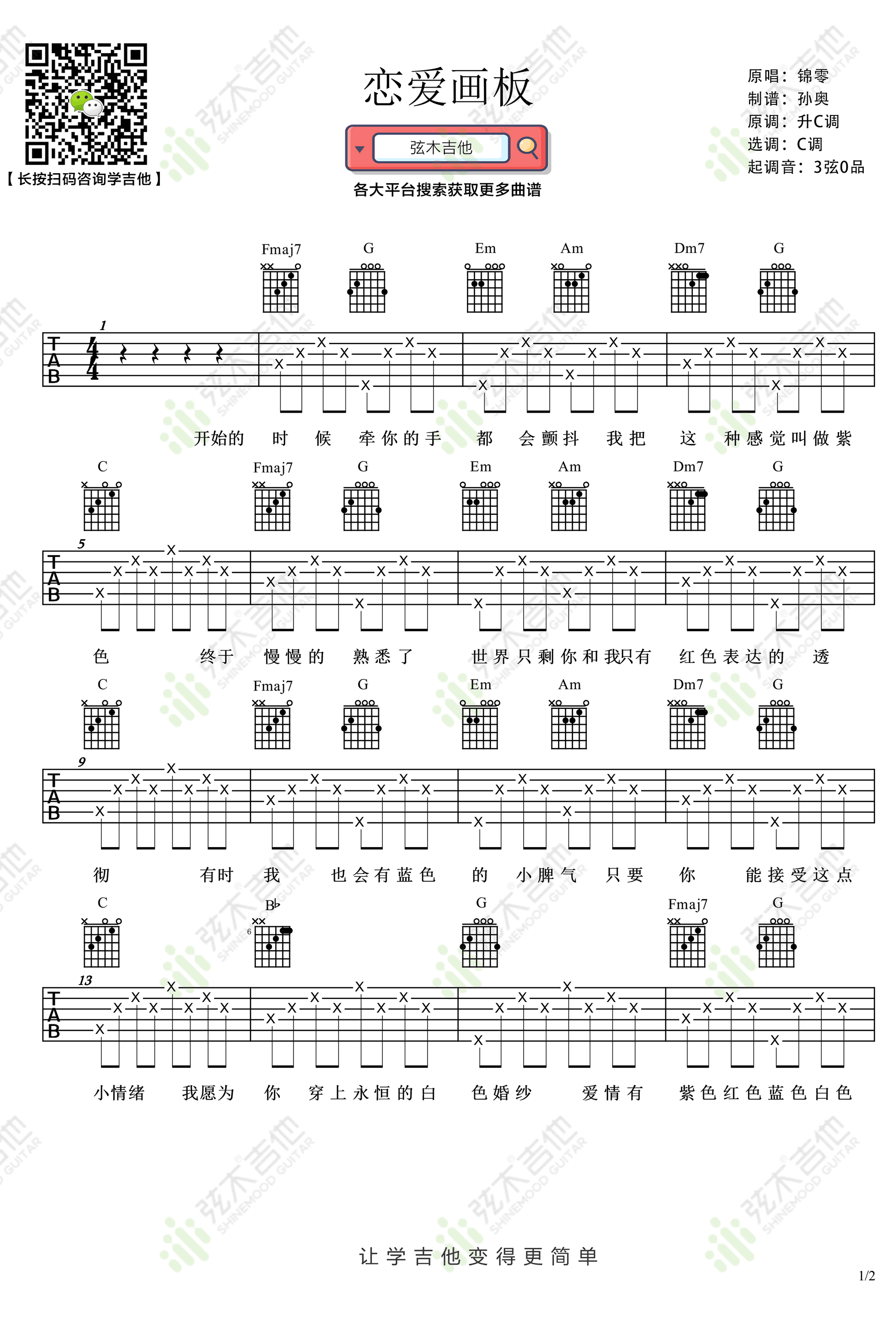 - 恋爱画板吉他谱_锦零_C调简单版_吉他弹唱谱