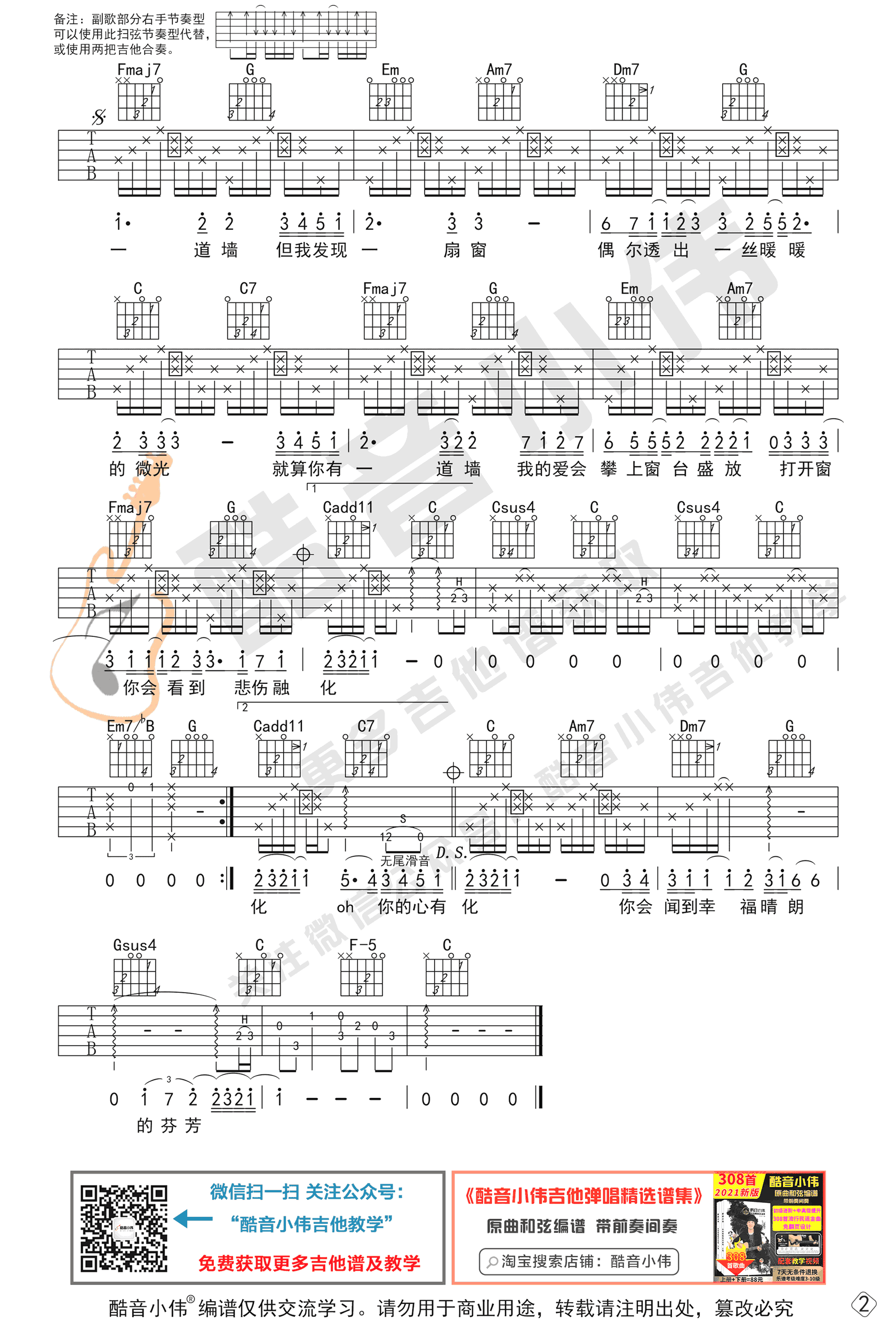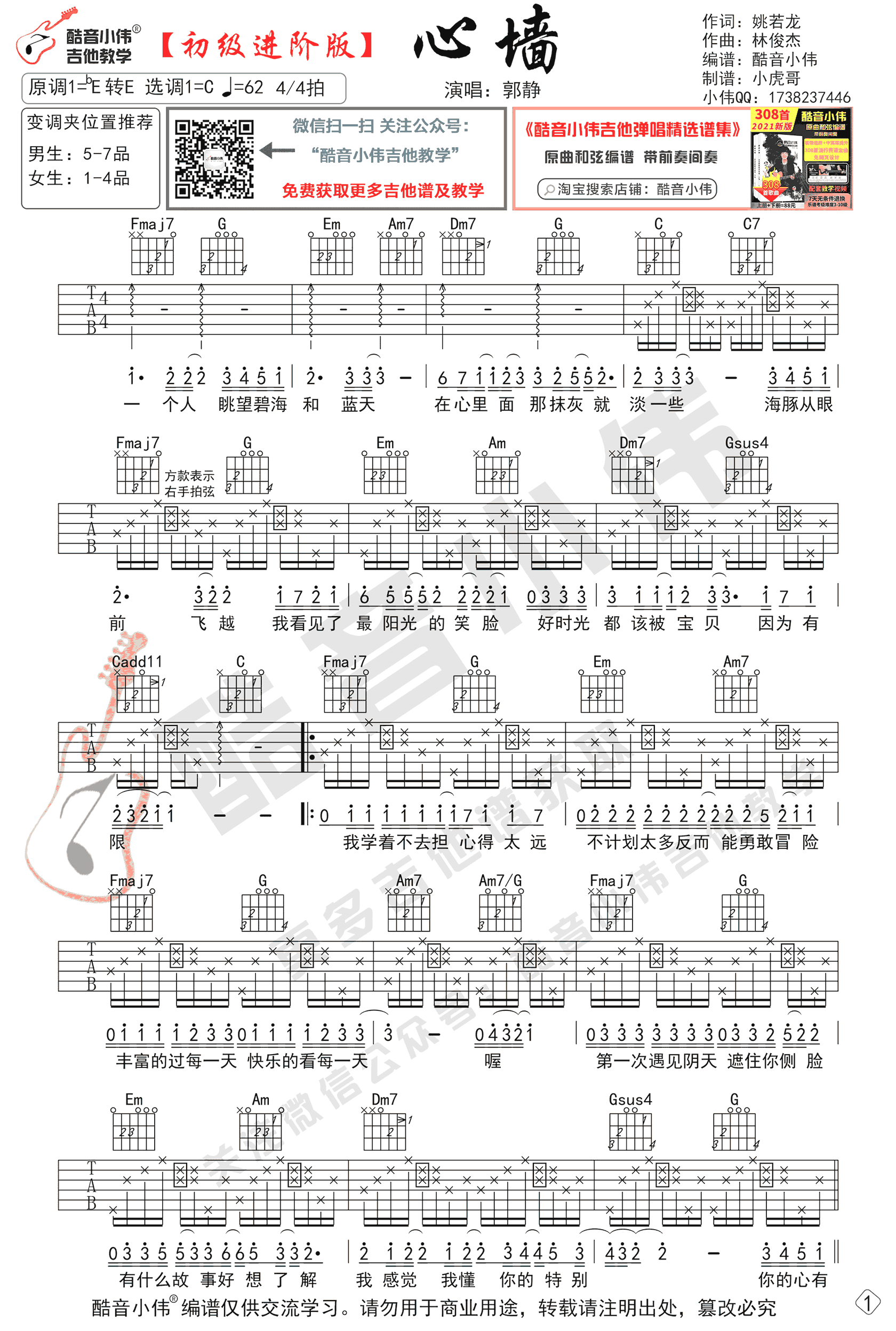 - 心墙吉他谱_郭静_C调初级进阶版_弹唱教学视频