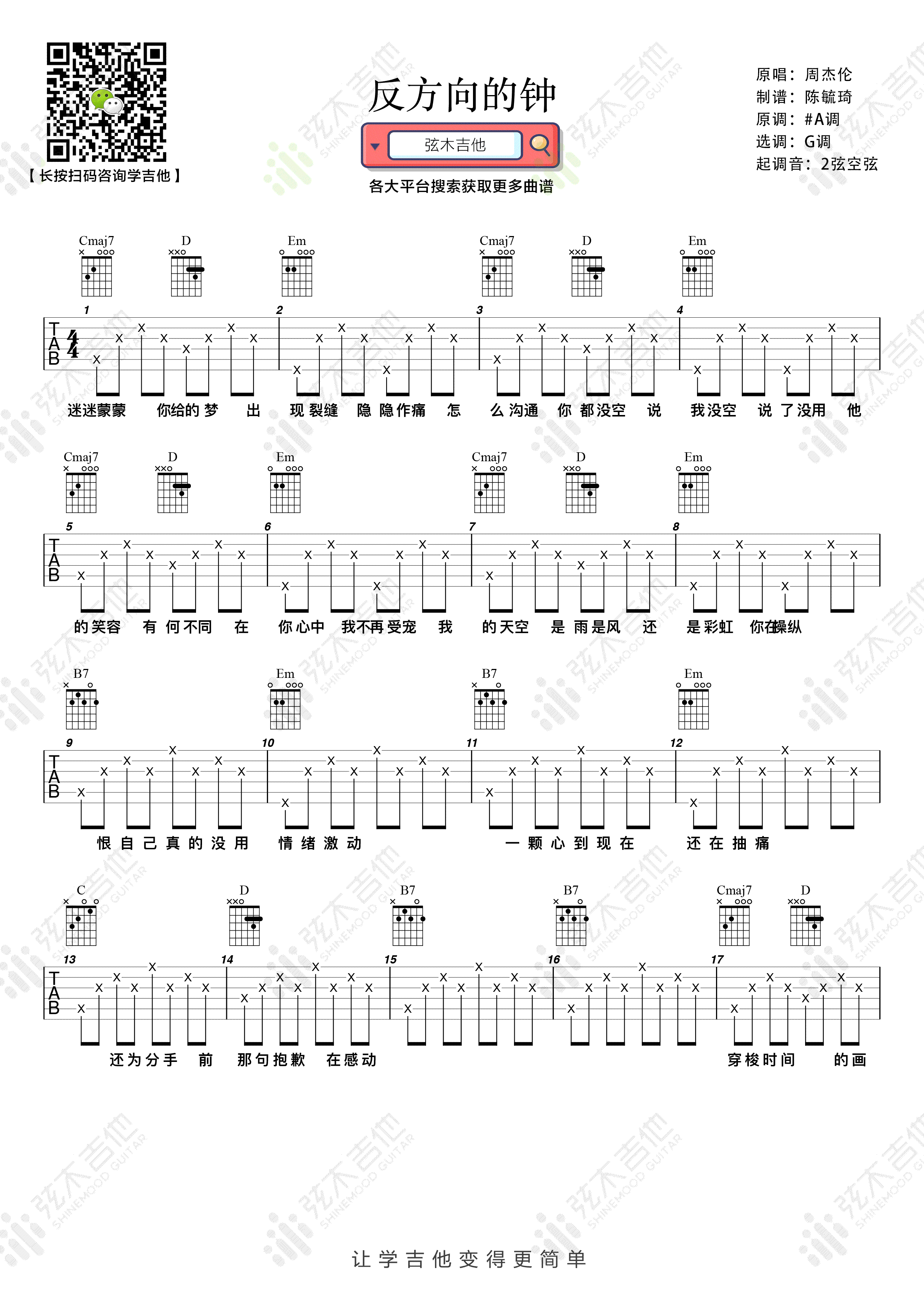 - 反方向的钟吉他谱_周杰伦_G调弹唱谱_高清版
