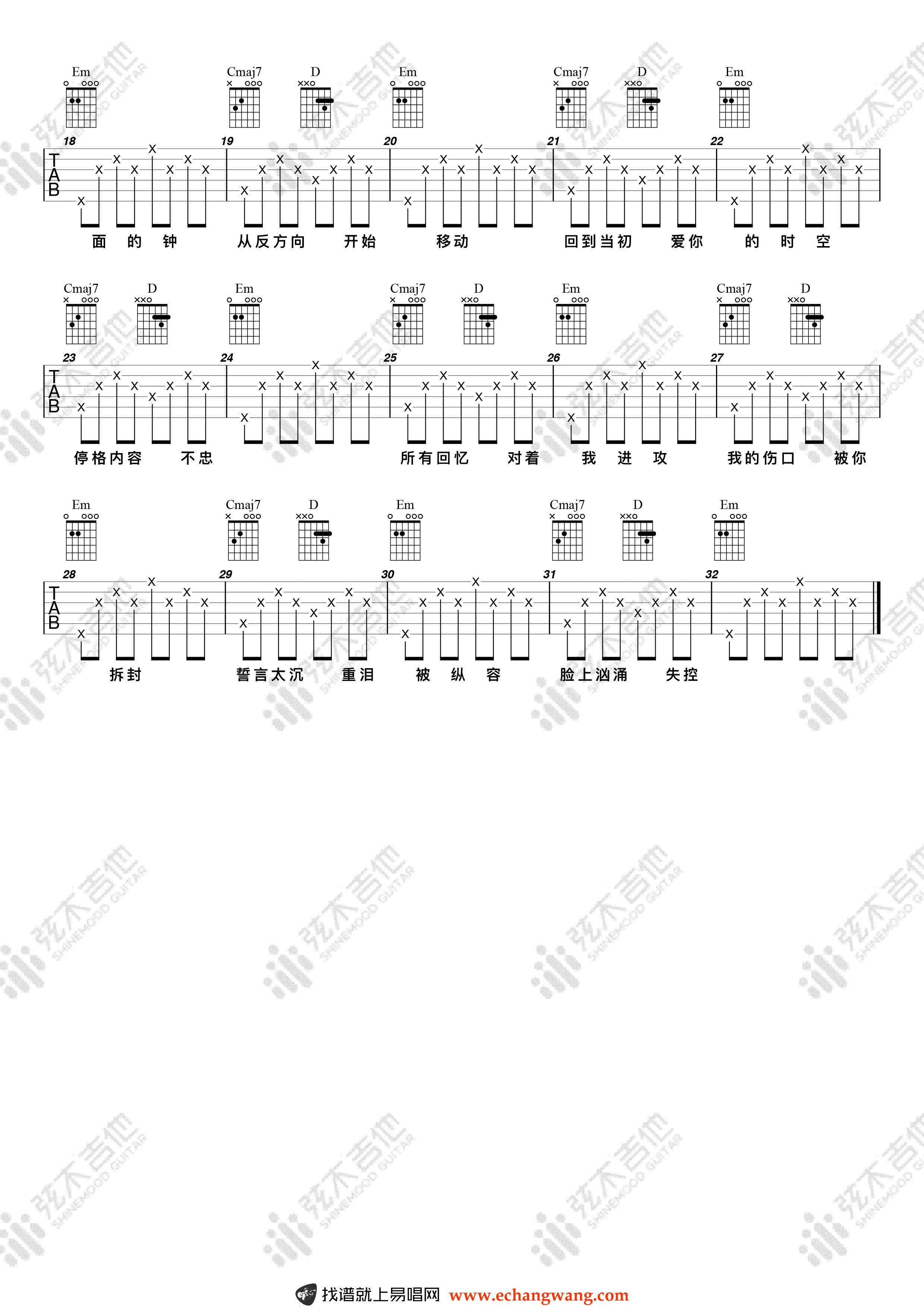 - 渐冷吉他谱_雪二《渐冷》C调弹唱_原版六线谱
