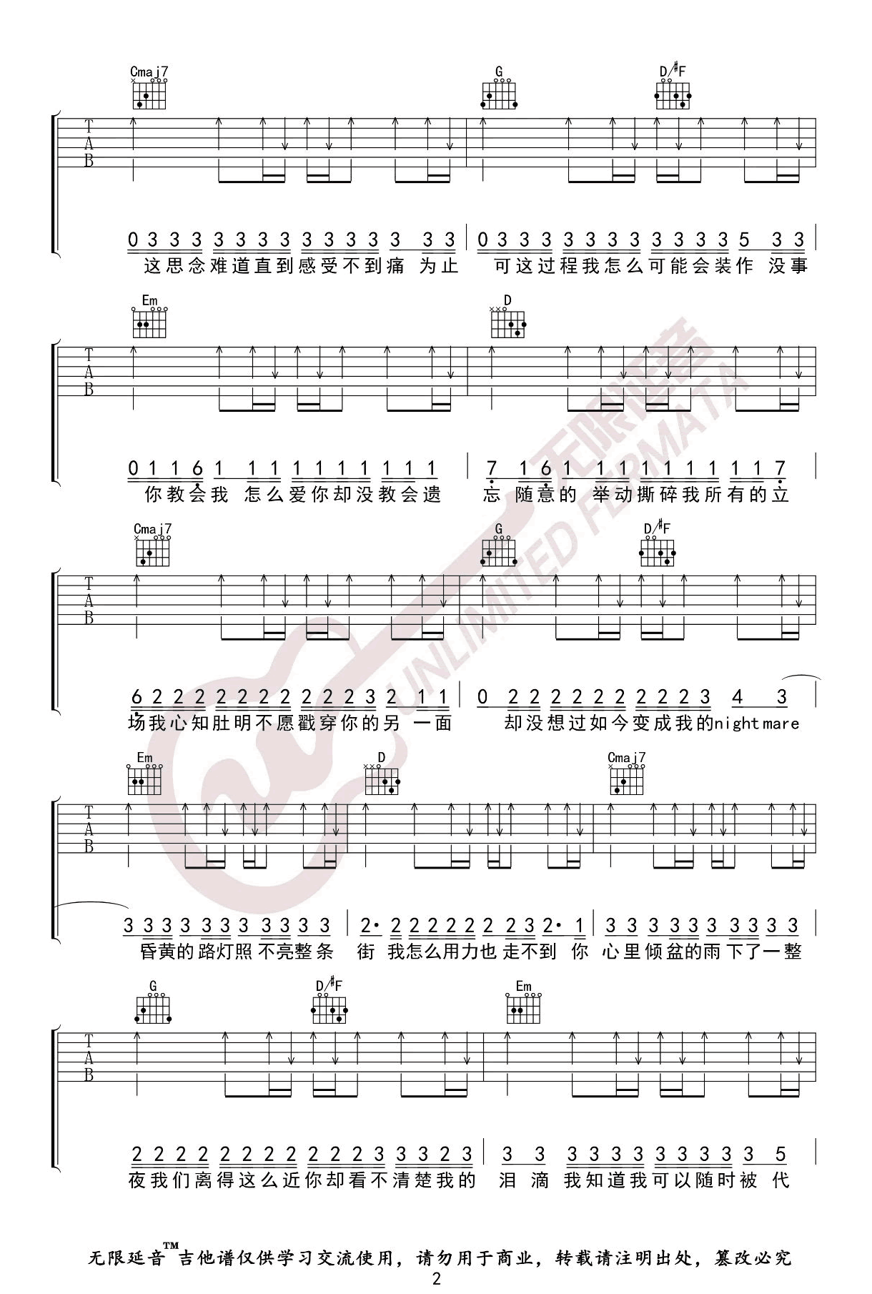 - 渐冷吉他谱_雪二《渐冷》C调弹唱_原版六线谱