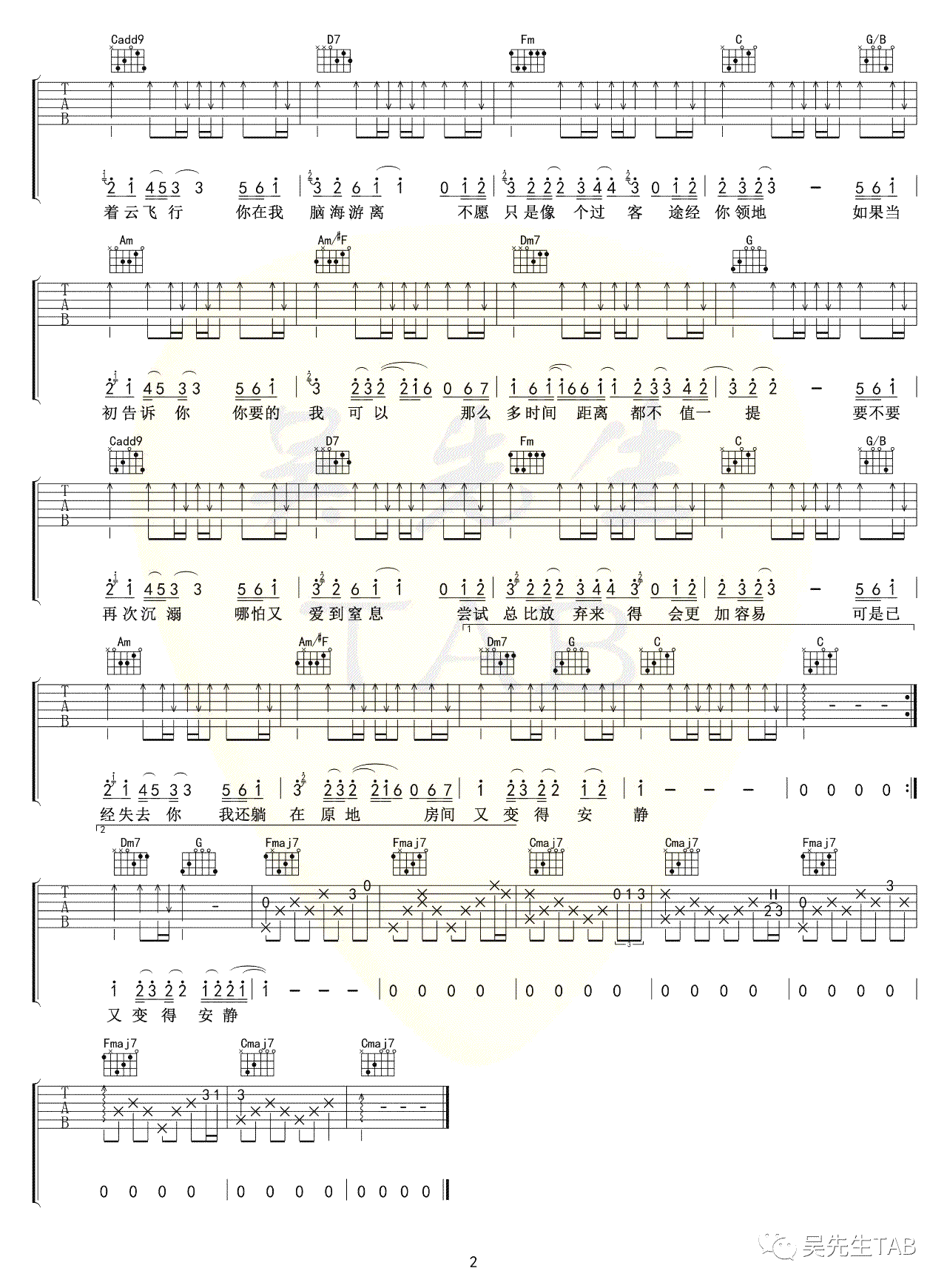 - 大雾吉他谱_未知音素/张一乔_C调弹唱谱_原版六线谱