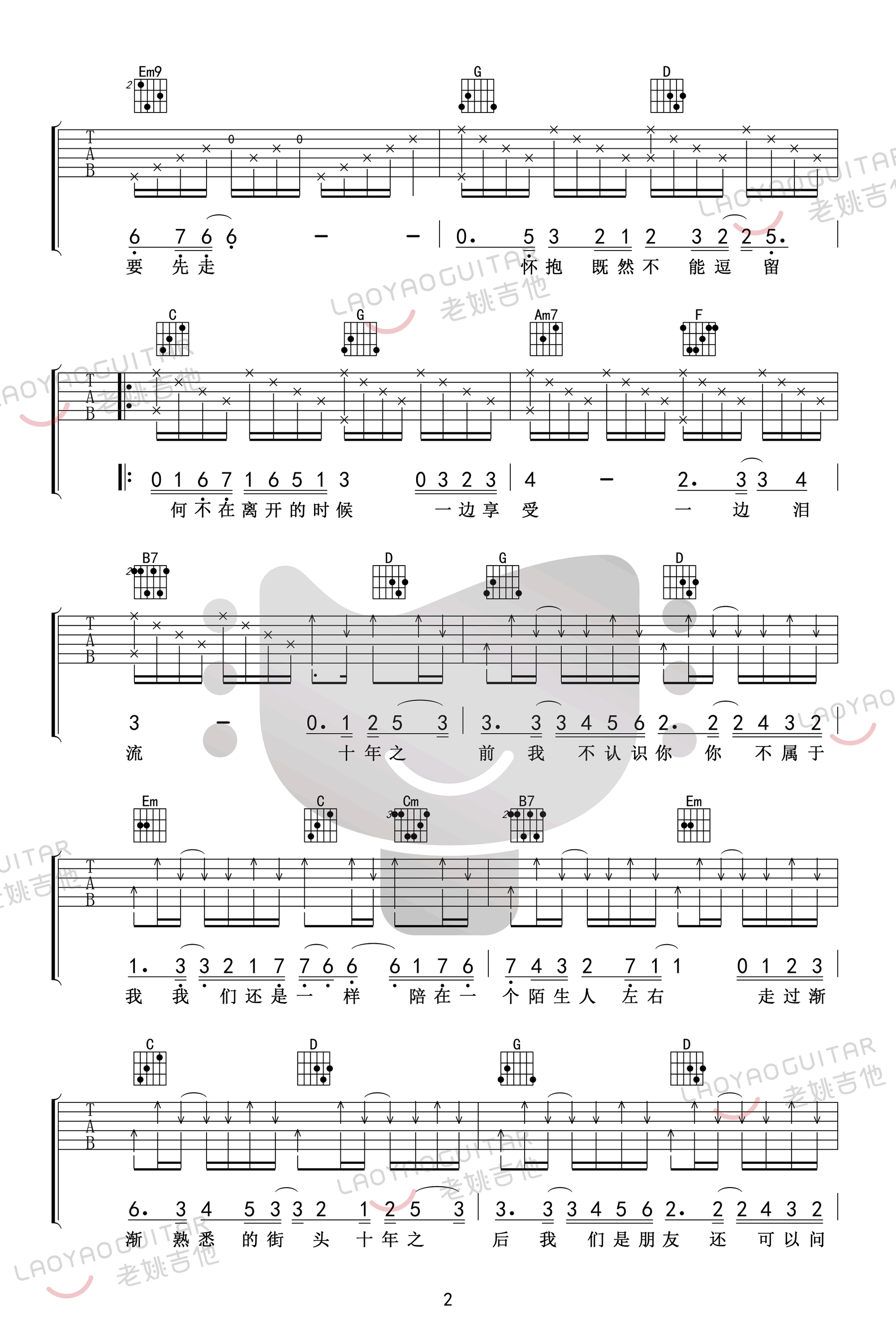 - 十年吉他谱_陈奕迅_G调原版编配_弹唱六线谱