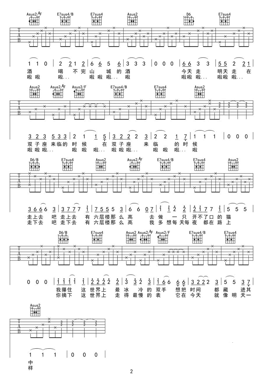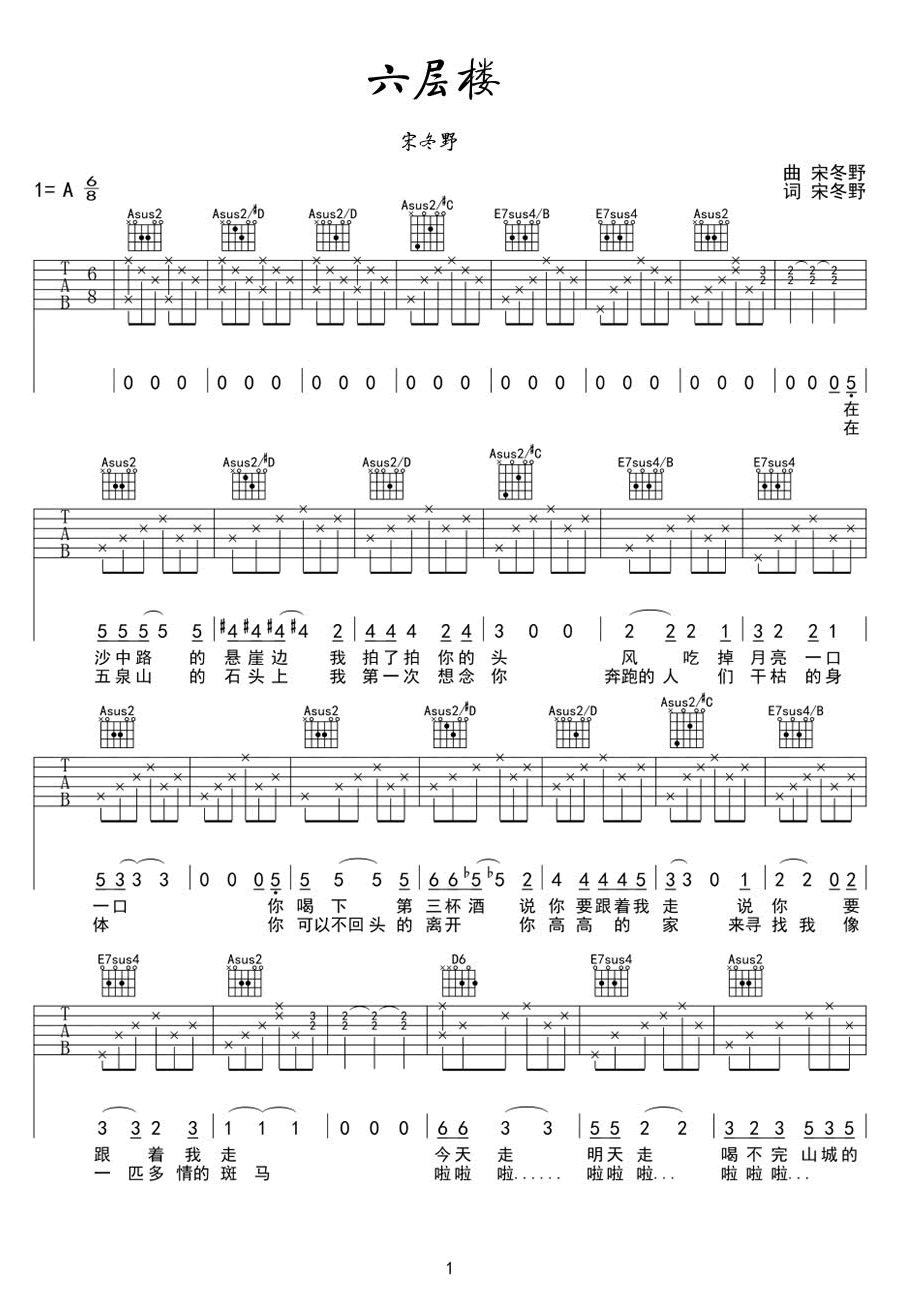 - 六层楼吉他谱 宋冬野 G调弹唱谱 吉他视频演示