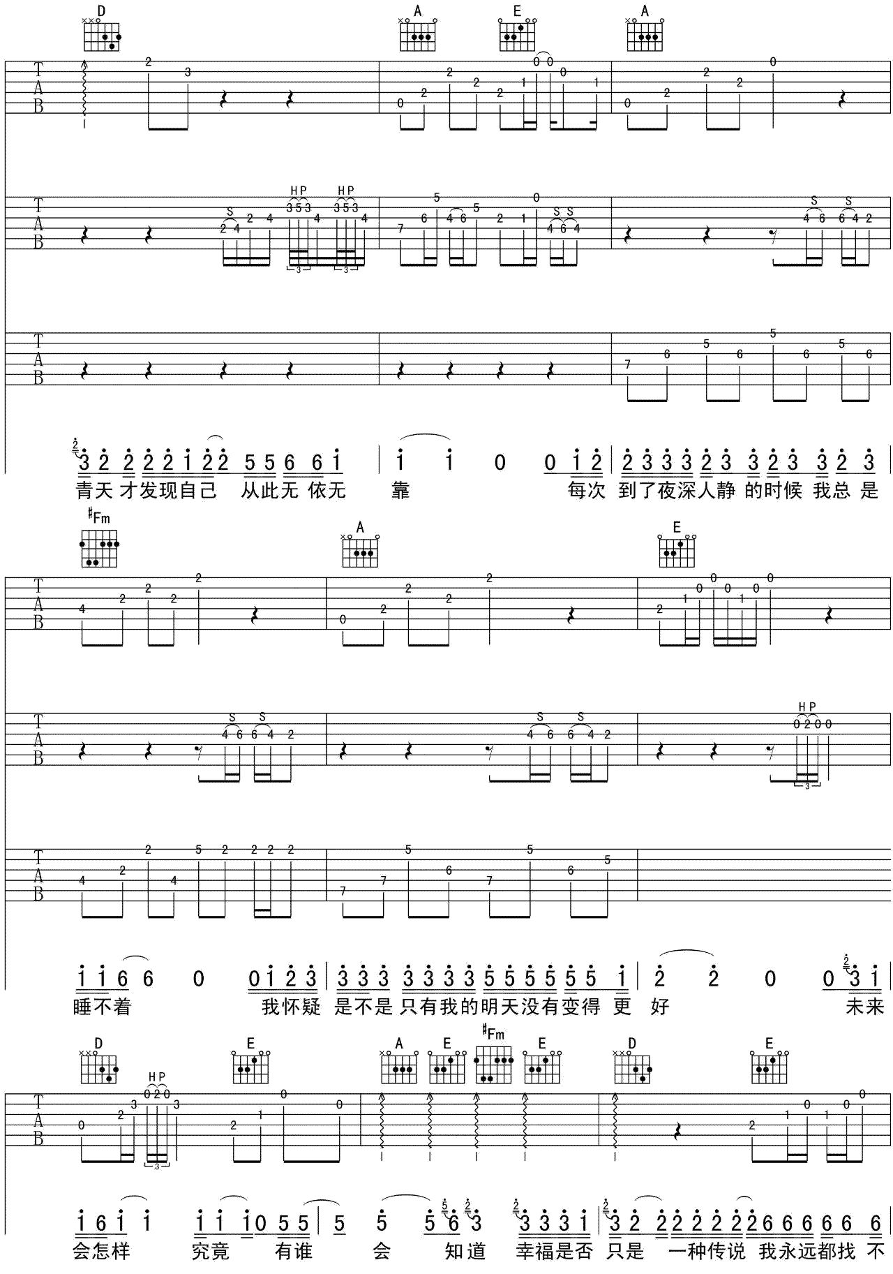 - 姗姗吉他谱 金玟岐 E调弹唱谱 《姗姗》六线谱 高清图片谱