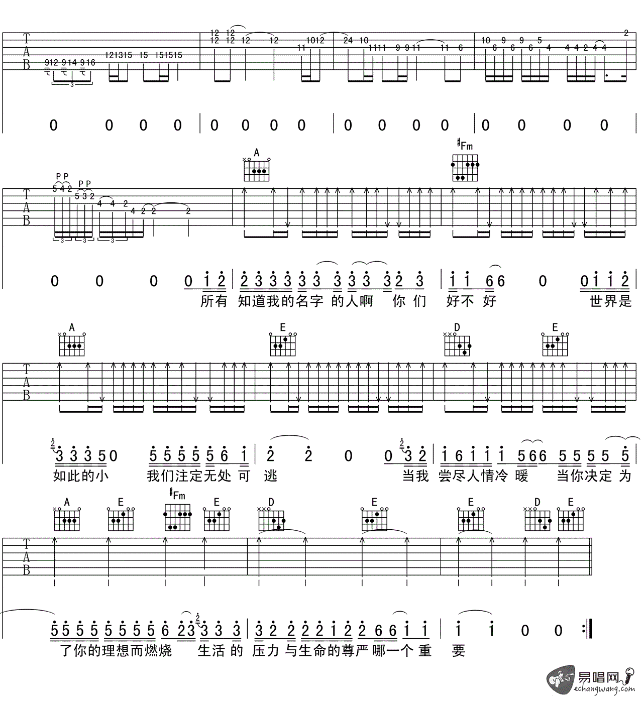 - 在人间吉他谱 王建房 C调高清弹唱谱 《what are words》中文