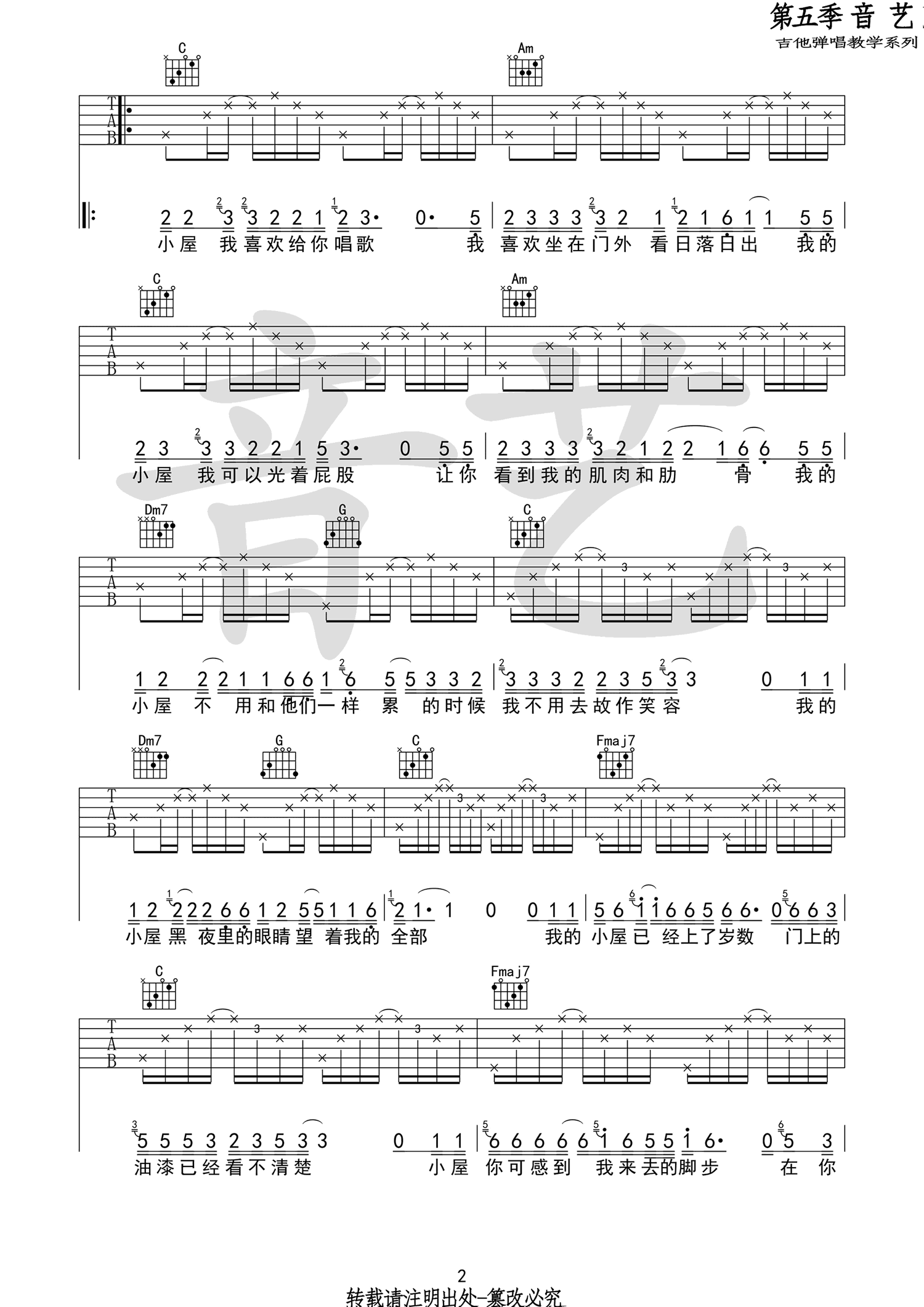 - 鼓楼吉他谱_赵雷_鼓楼六线谱(图片谱)