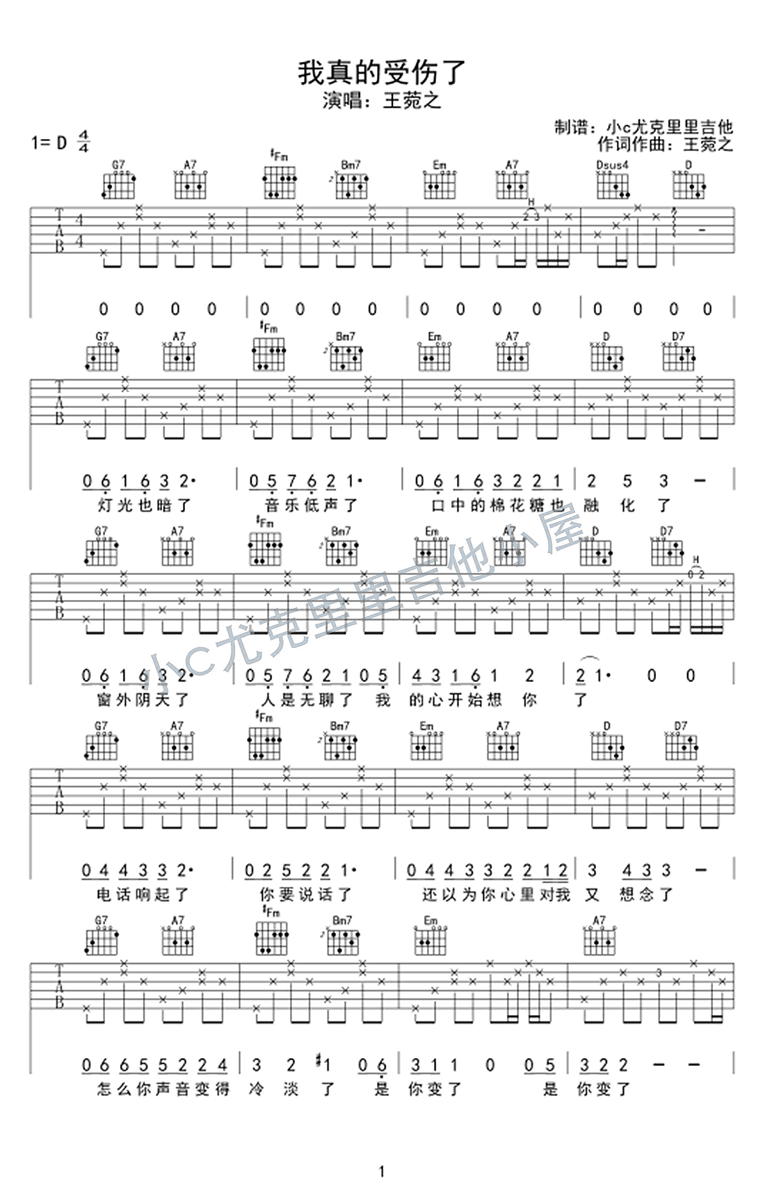 我真的受伤了吉他谱 王菀之 D调女生版 弹唱六线谱 曲谱类型: 弹唱伴奏谱 编配来源: 小C尤克里里 演唱: 王菀之 发布于:2017-06-06 热点: 次 曲谱归类: 王菀之吉他谱 我真的受伤了吉他谱,D版原调女生版,香港音乐才女王菀之演唱的《我真的受伤了》吉他弹唱谱,六线谱编配,两张图片谱。易唱网推荐收藏。幻像似的爱情,埋藏我心深处,每个冷冰的晚上,那温暖都在我心。 《我真的受伤了》是张学友很经典的代表作。 *网站内容自网络收集整理而来,仅供吉他爱好者学习交流,版权归其属原作者,若侵犯了您的合法权利,请与我们联系,我们将立刻处理。 上一篇:一起摇摆吉他谱 汪峰 G调弹唱谱 完整版图片谱 下一篇:那些你很冒险的梦吉他谱 林俊杰 C调弹唱谱 六线谱 我真的受伤了 歌词 王菀之 词:王菀之 曲:王菀之 编曲:江建民 灯光也暗了 音乐低声了 口中的棉花糖也融化了 窗外阴天了 人是无聊了 我的心开始想你了 电话响起了 你要说话了 还以为你心里对我又想念了 怎么你声音变得冷淡了 是你变了 是你变了 查看全部歌词…… 相关吉他谱 我真的受伤了吉他谱_王菀之_吉他弹唱谱