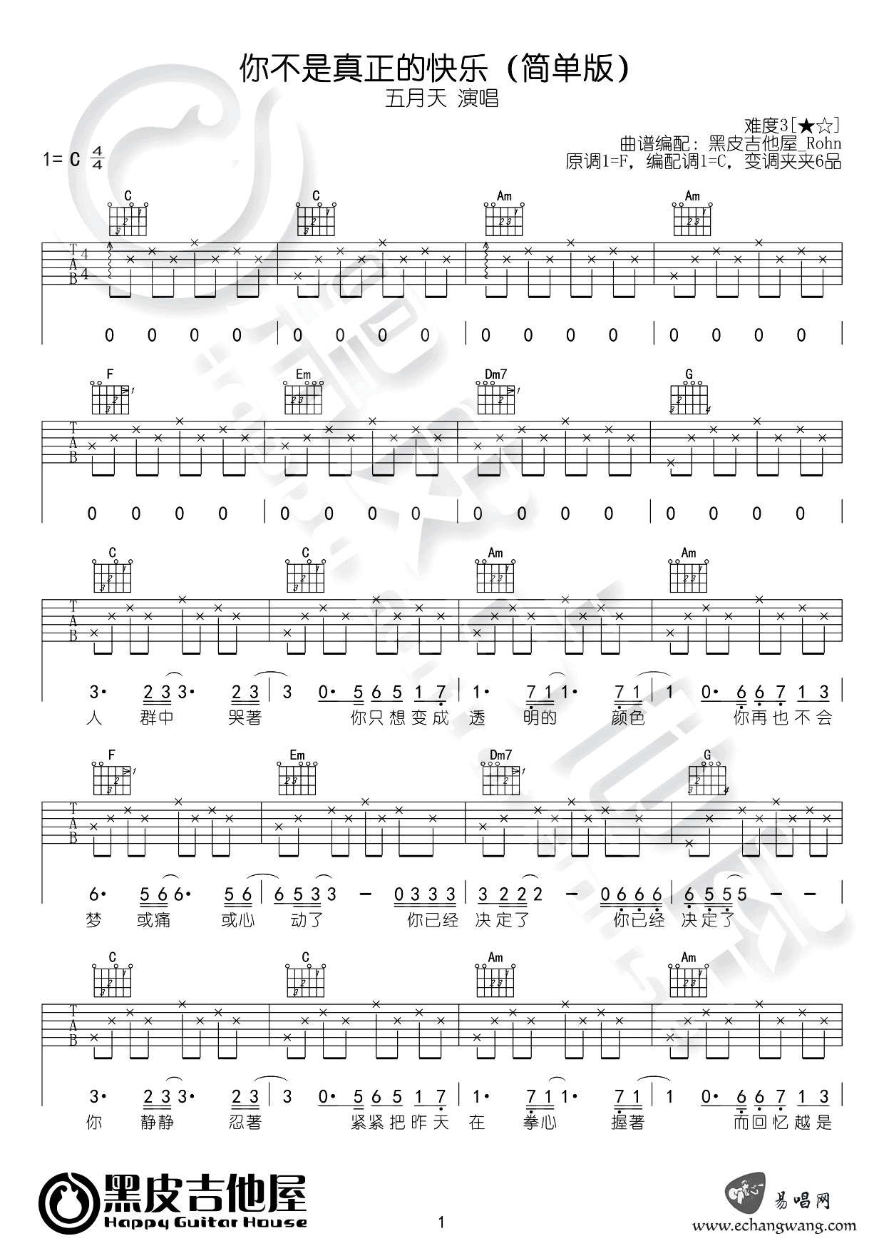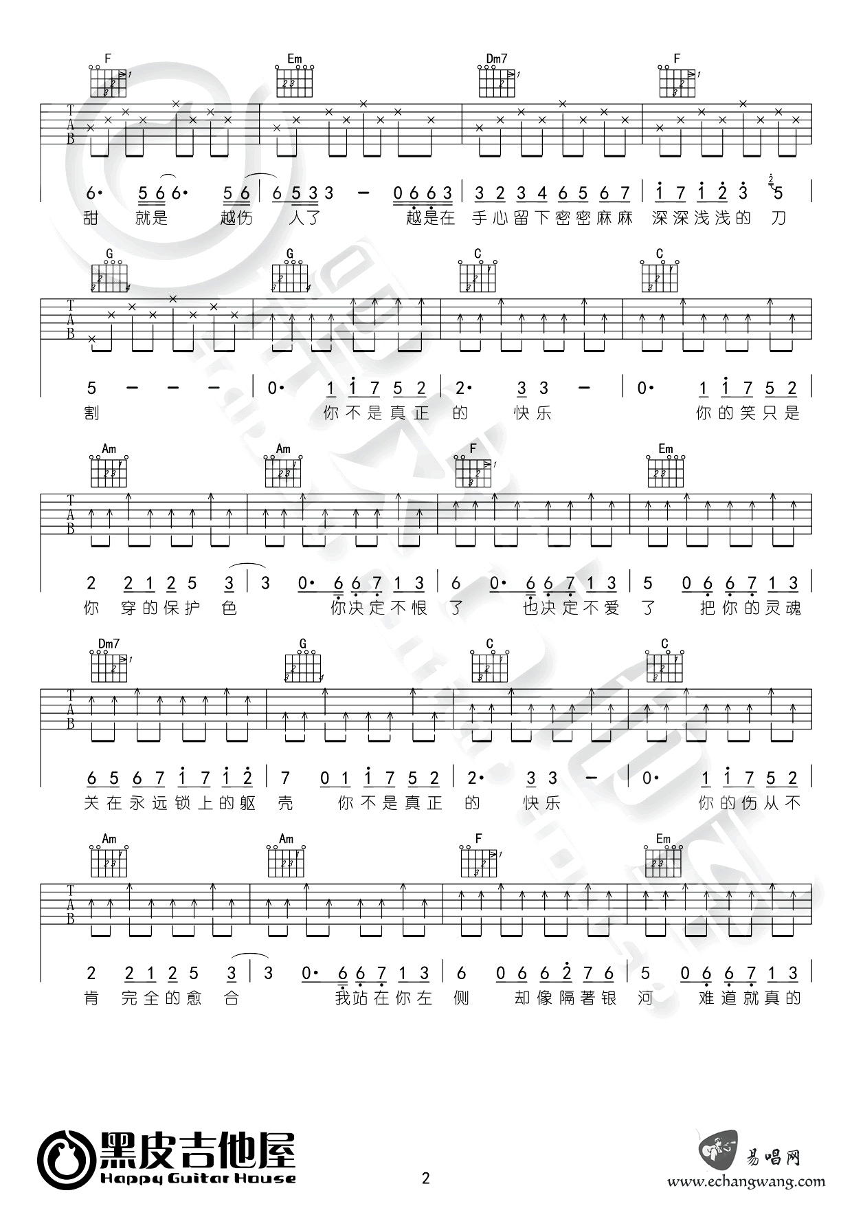 - 你不是真正的快乐吉他谱_邓紫棋女生版_弹唱和弦谱