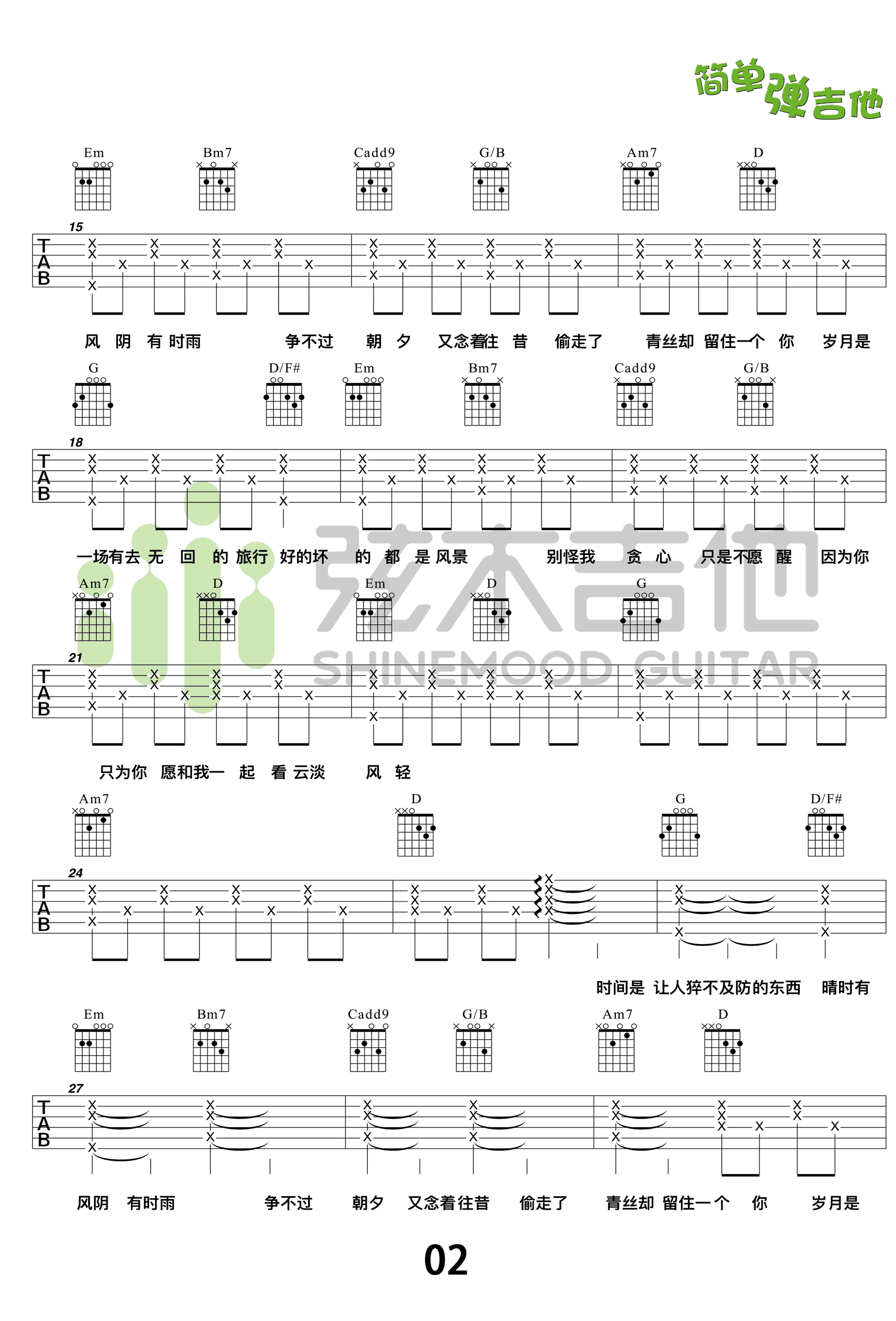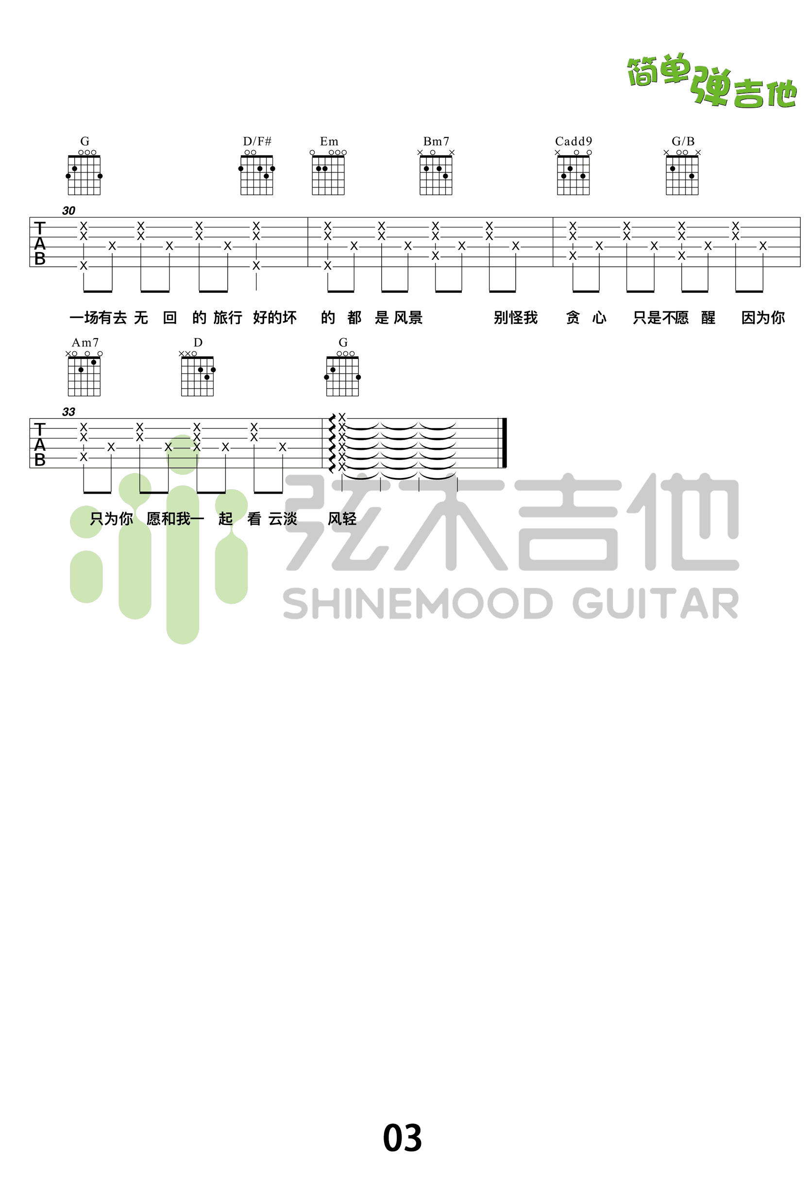- 夏天的风吉他谱 G调男声版 温岚 高清弹唱谱