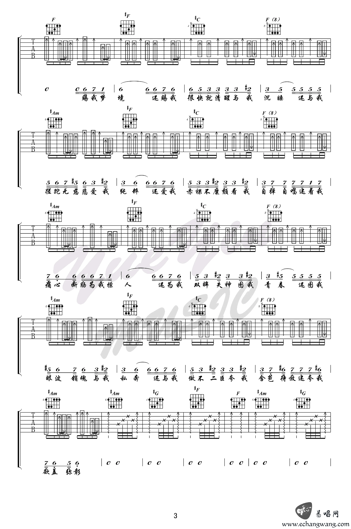 - 虚拟吉他谱_陈粒_C调简单版_虚拟弹唱谱