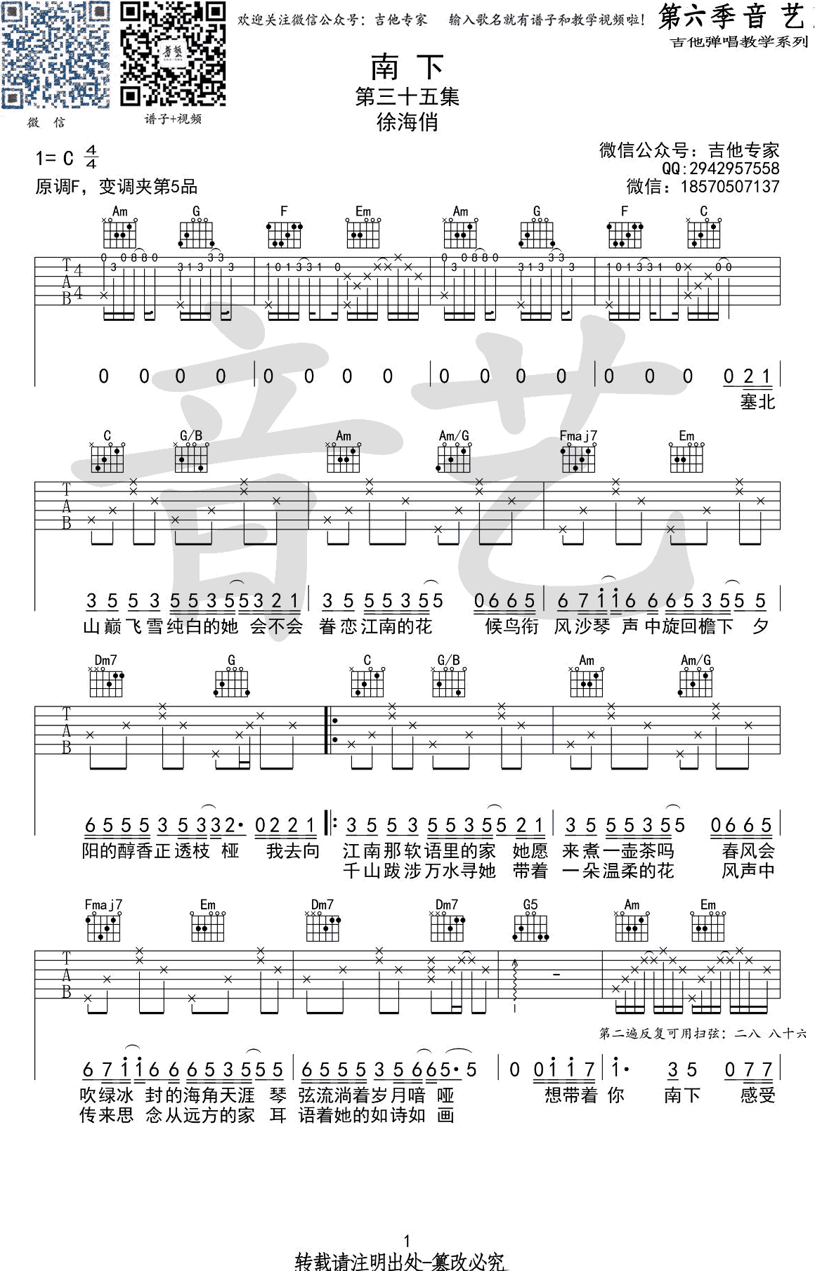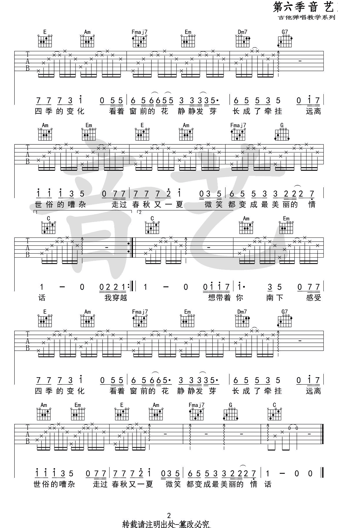 - 七月的南方吉他谱 莫倪 C调高清弹唱谱