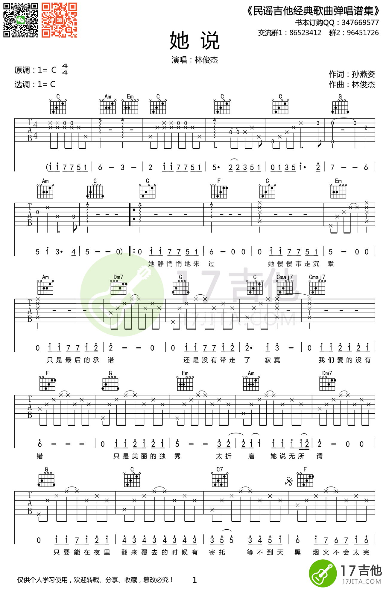 - 她说吉他谱_林俊杰_C调弹唱谱_高清版