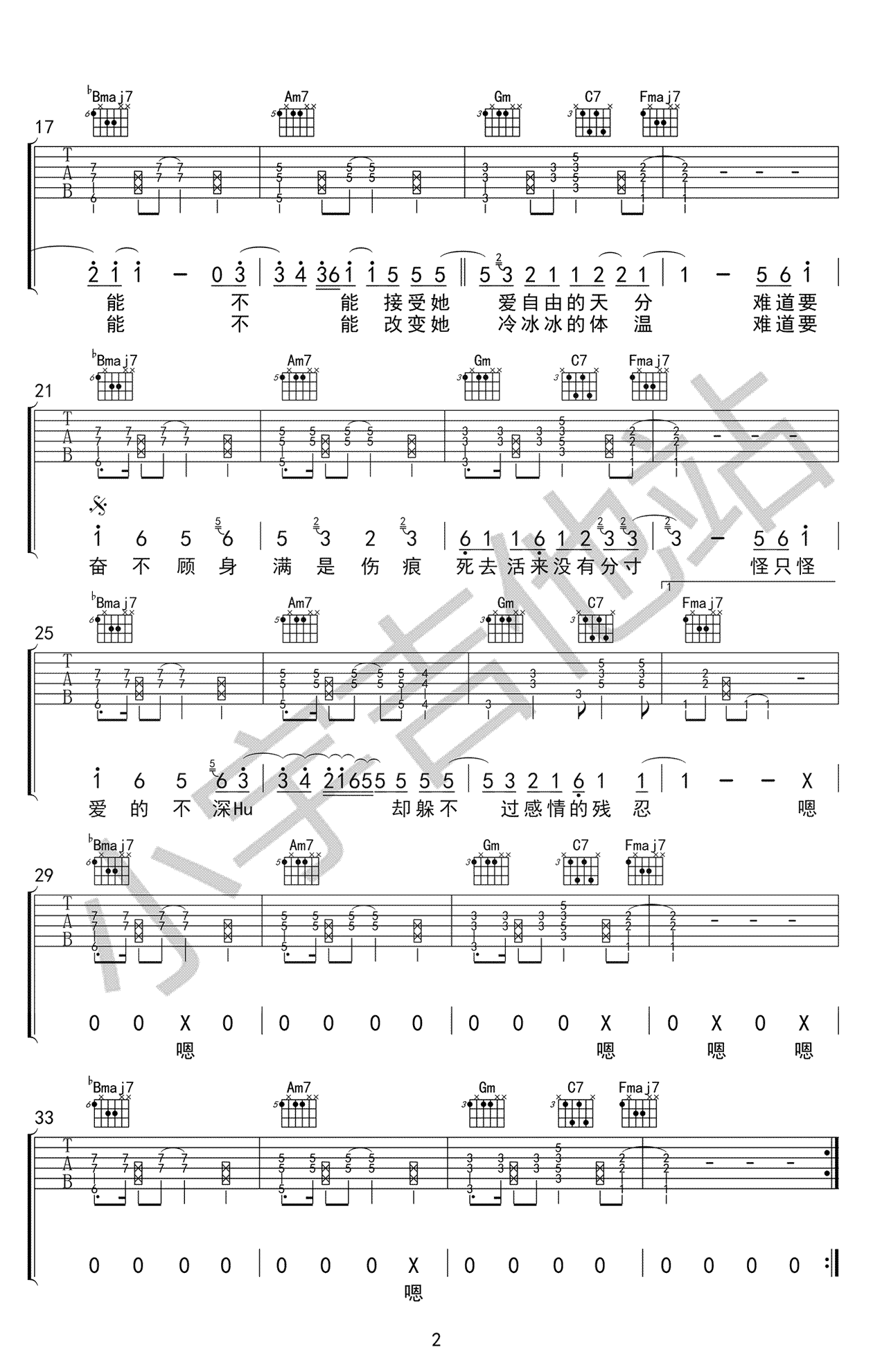 - 姗姗吉他谱 金玟岐 E调弹唱谱 《姗姗》六线谱 高清图片谱
