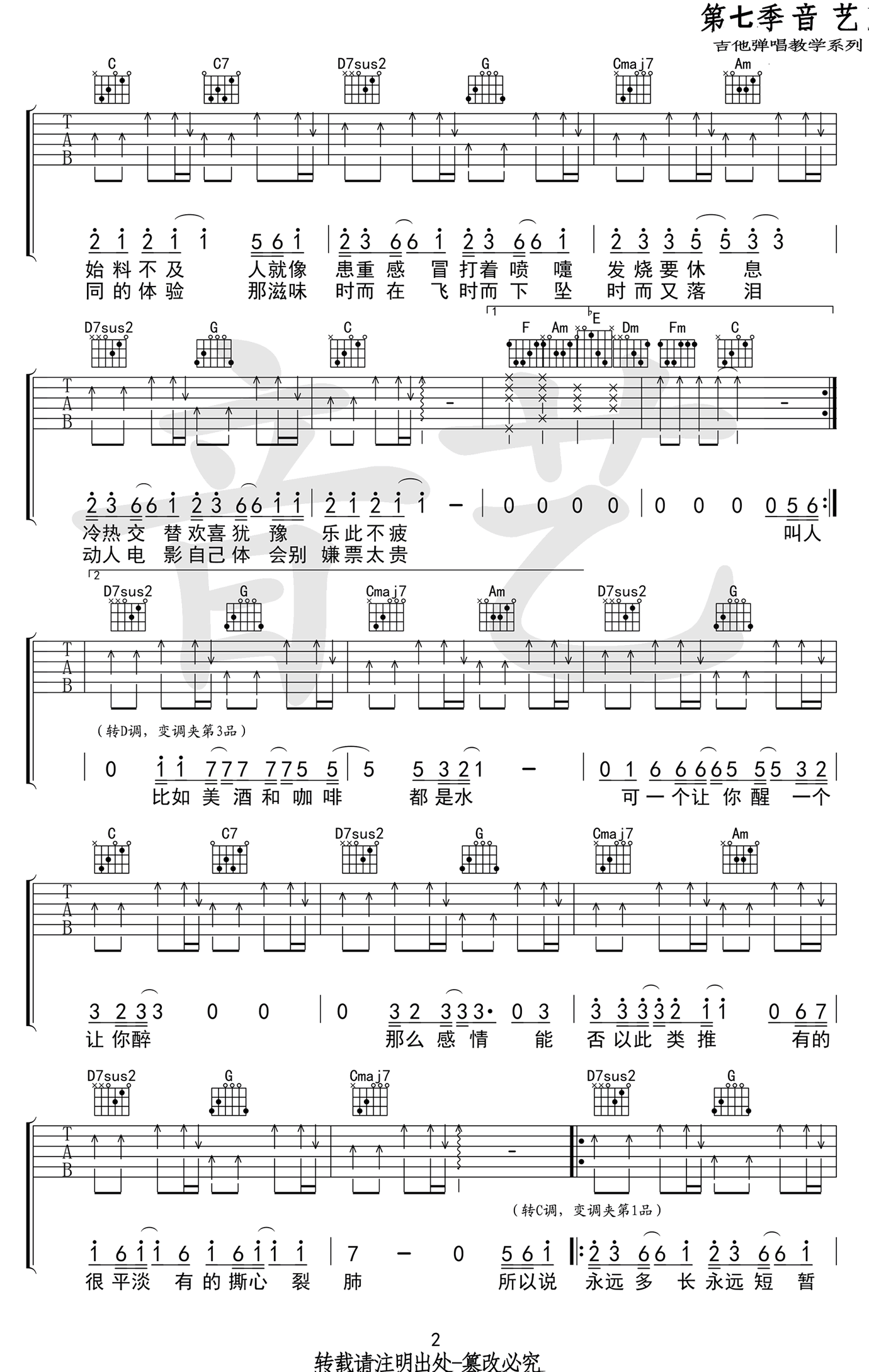 - 纸短情长吉他谱 C调 吉他弹唱+教学视频 小磊吉他编配