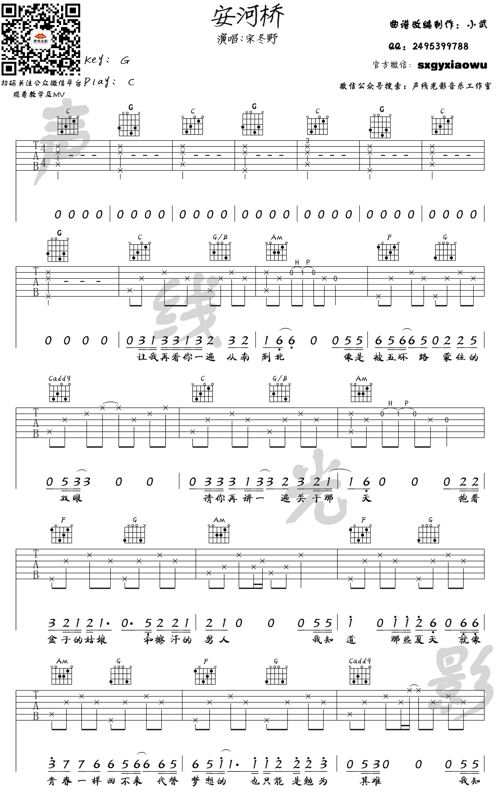 - 安河桥吉他谱 宋冬野 G调高清图片谱 吉他弹唱教学视频