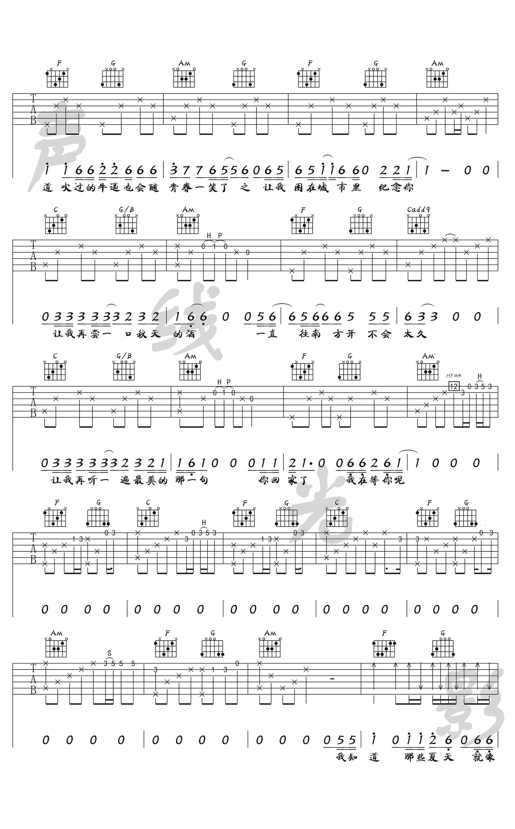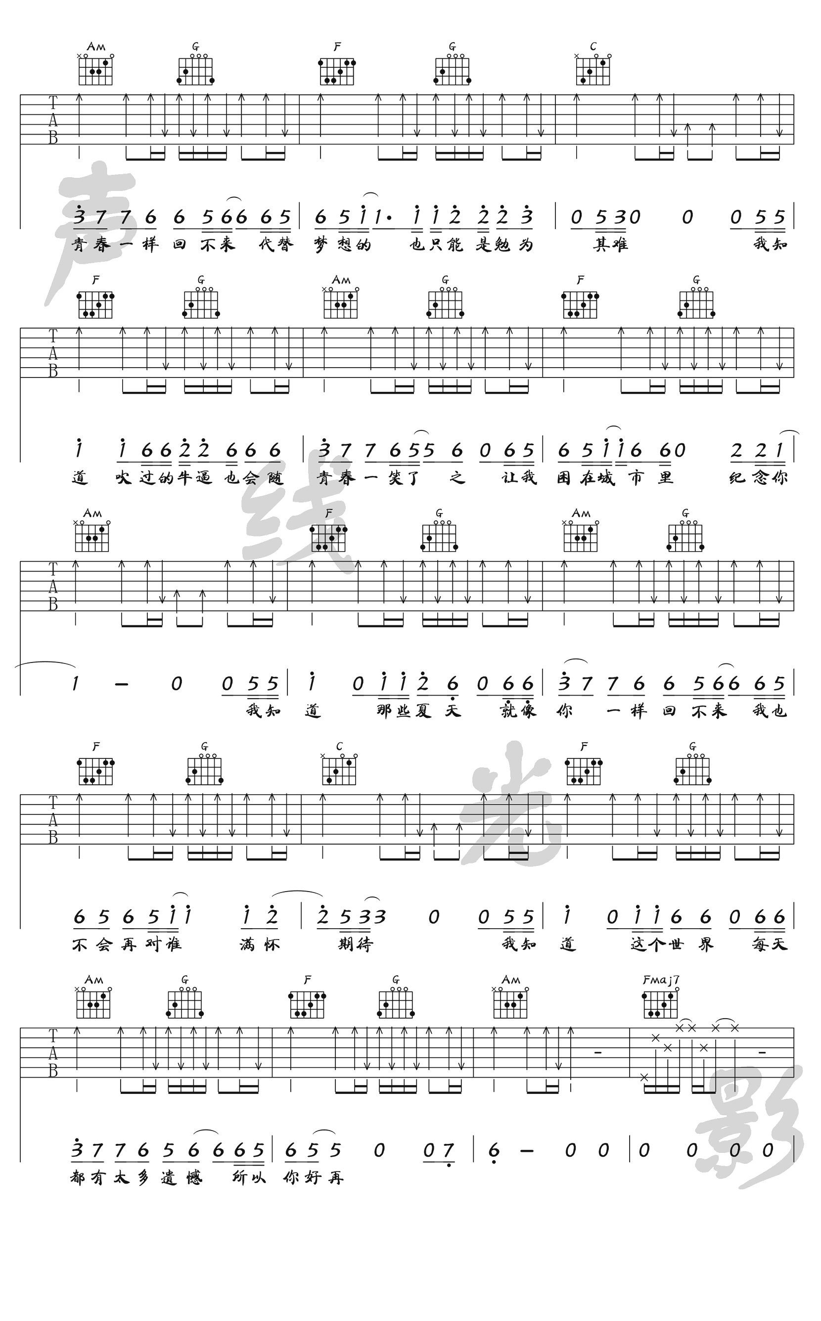 - 宋冬野《安和桥》吉他谱 G调高清版 六线谱