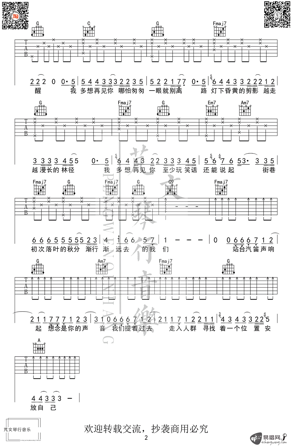 - 秋城吉他谱 丢火车乐队 G调指法 高清六线谱