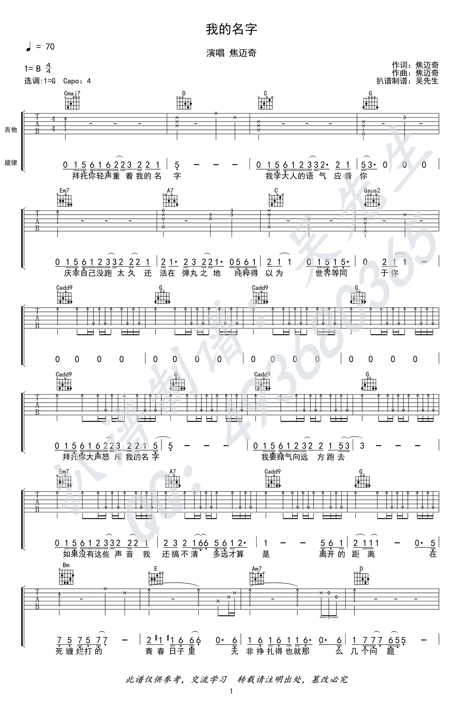 - 喊你的名字吉他谱 吉克隽逸 G调弹唱谱 吉他六线谱
