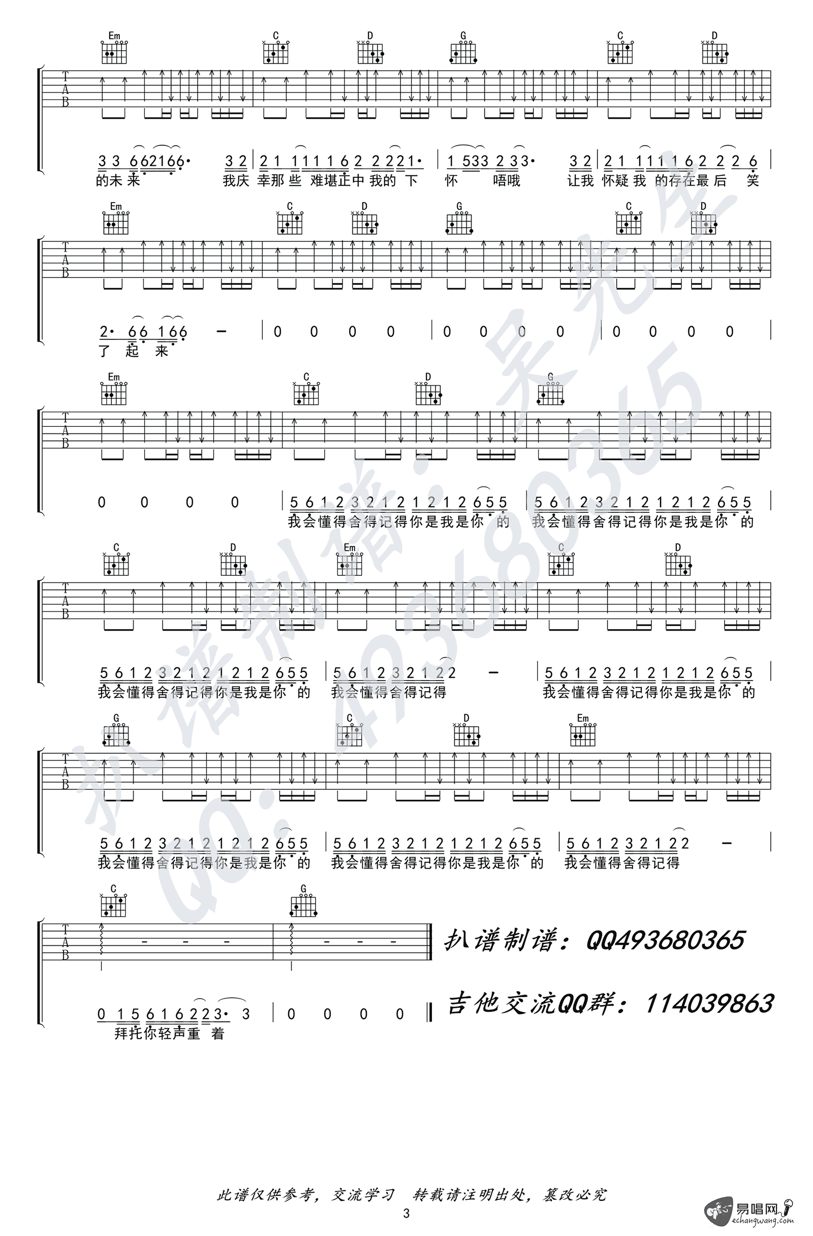 - 带我走吉他谱 杨丞琳/沈以诚 弹唱图片谱 吉他教学视频