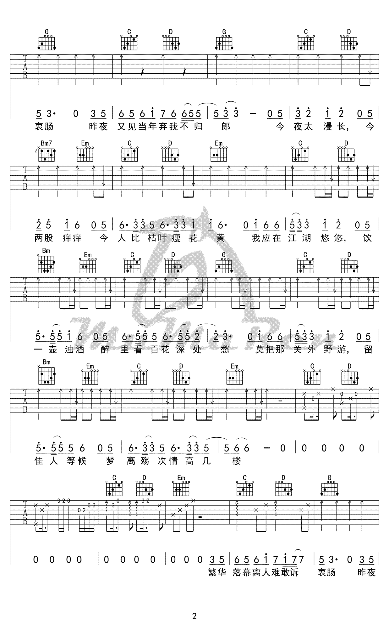 - 纸短情长吉他谱 烟把儿 C调简单版 吉他视频示范