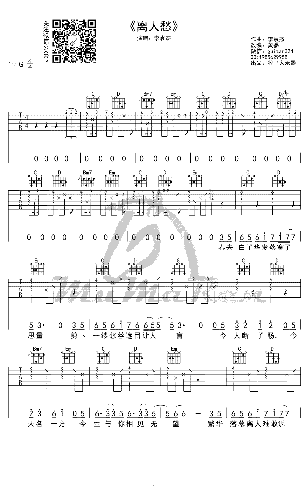 - 纸短情长吉他谱 C调 吉他弹唱+教学视频 小磊吉他编配
