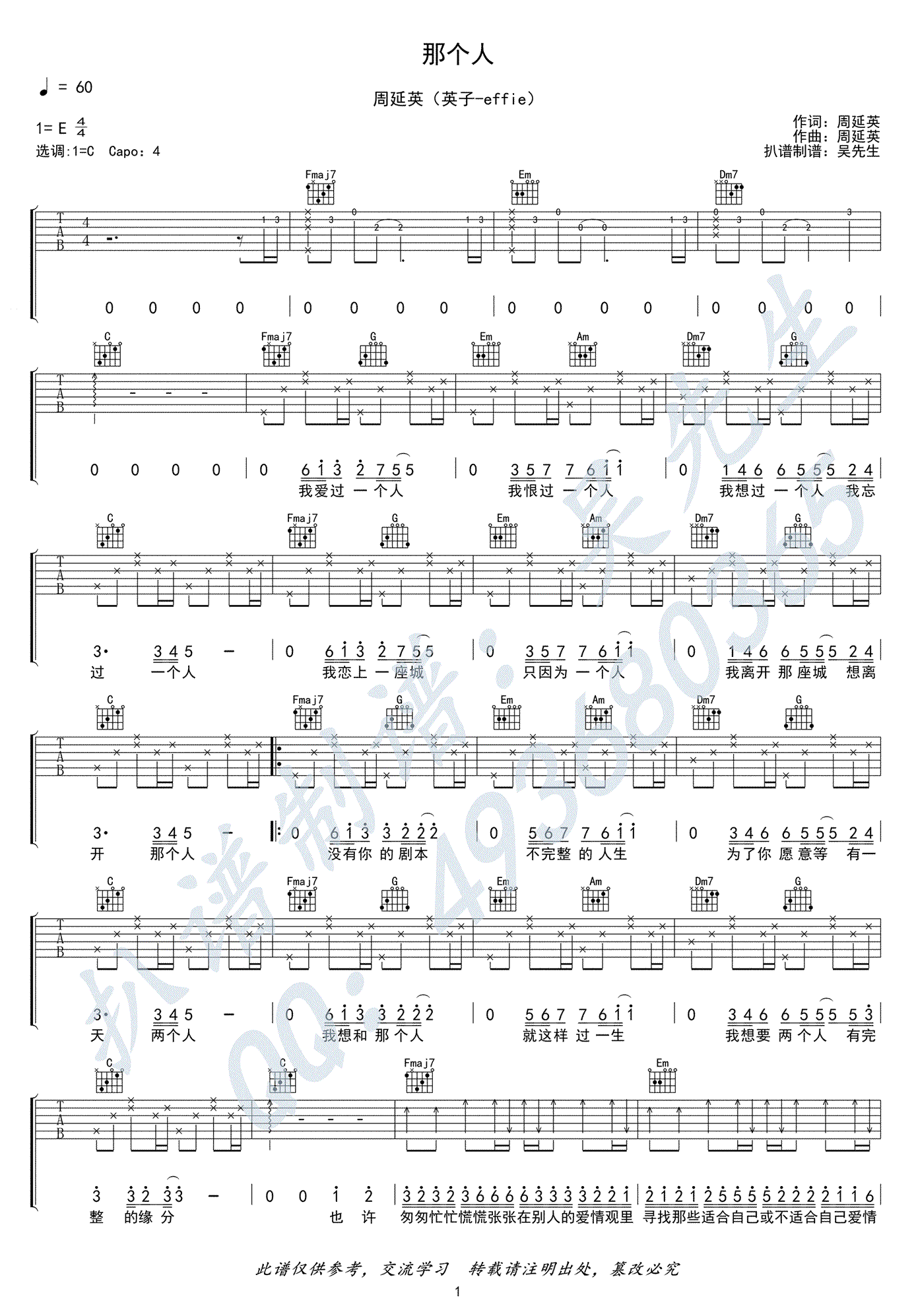 - 那个人吉他谱 周延英 抖音歌曲 高清图片谱