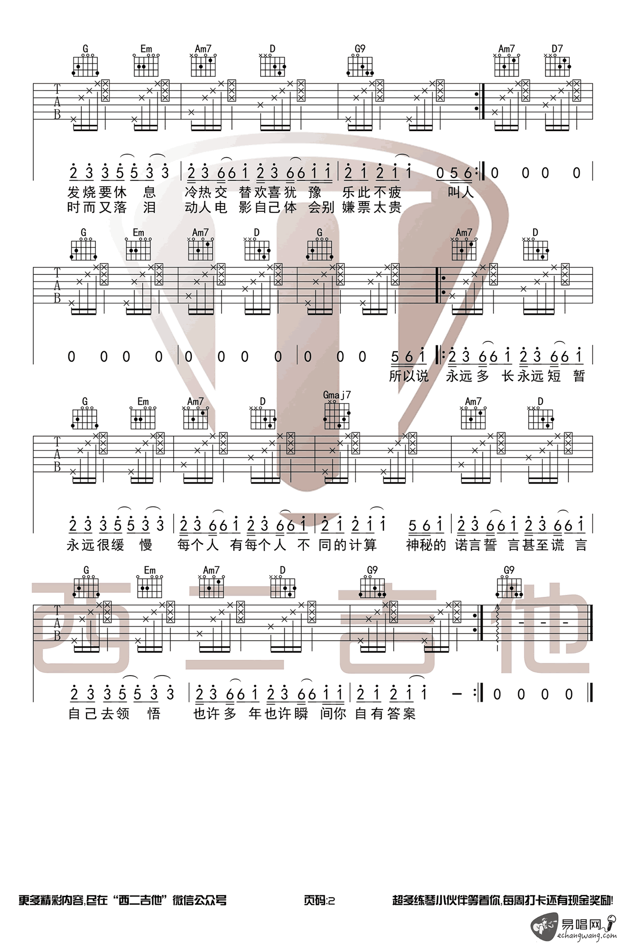 - 抖音歌曲 答案吉他谱 杨坤VS郭采洁 C调弹唱谱