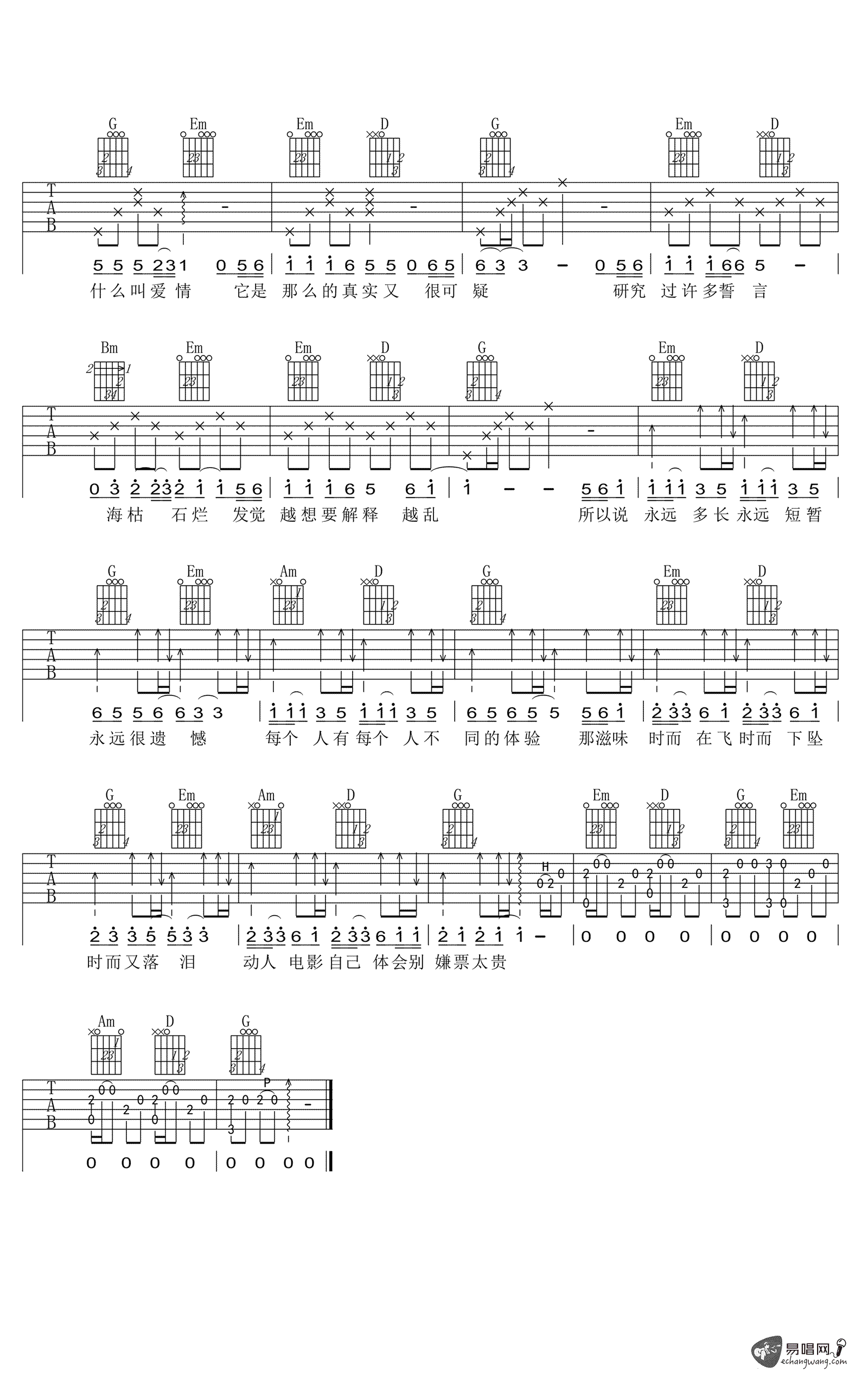 - 一眼云烟吉他谱 回音哥 D调弹唱谱 高清图片谱