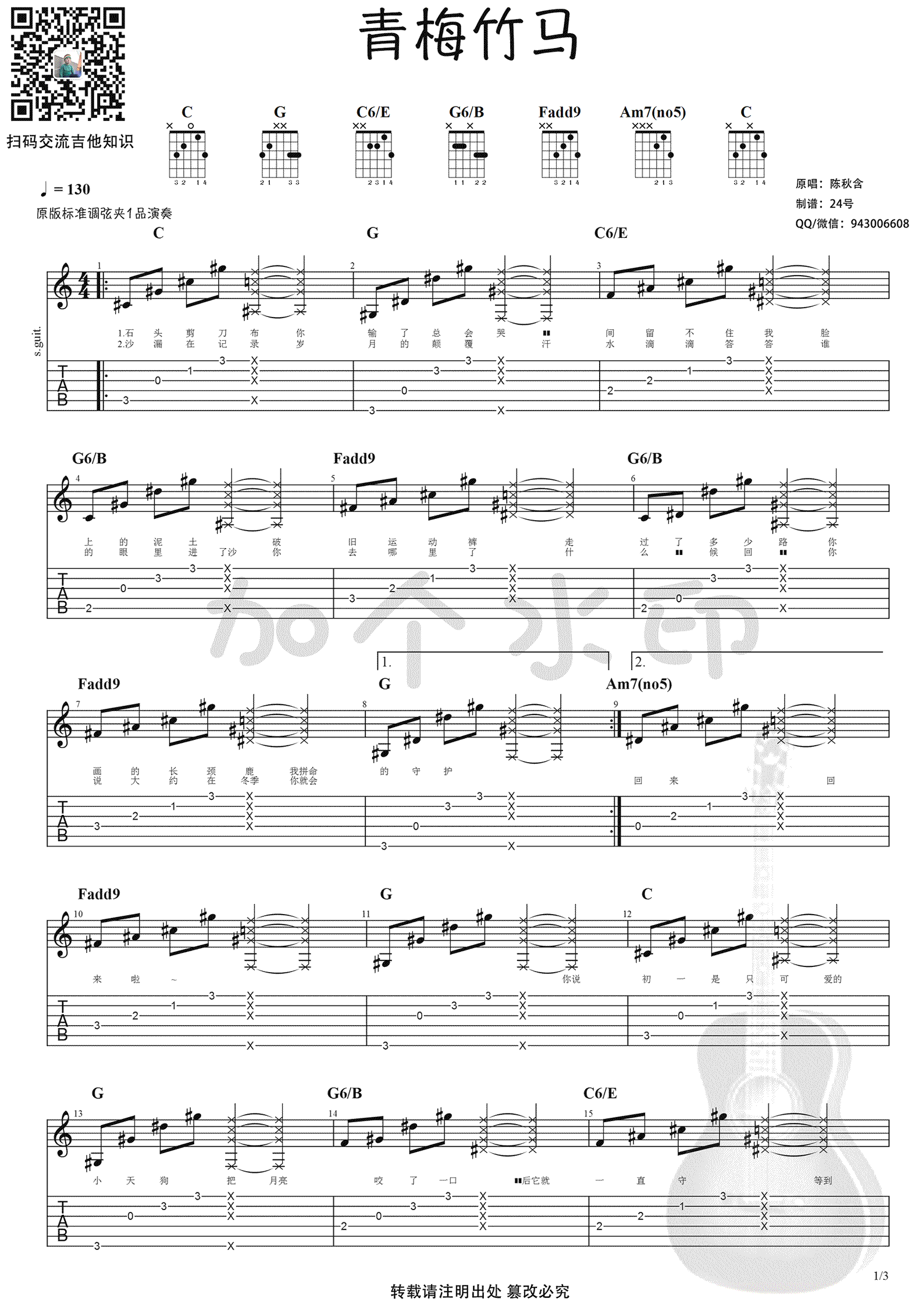 - 纸短情长吉他谱 烟把儿乐队 G调 吉他弹唱视频
