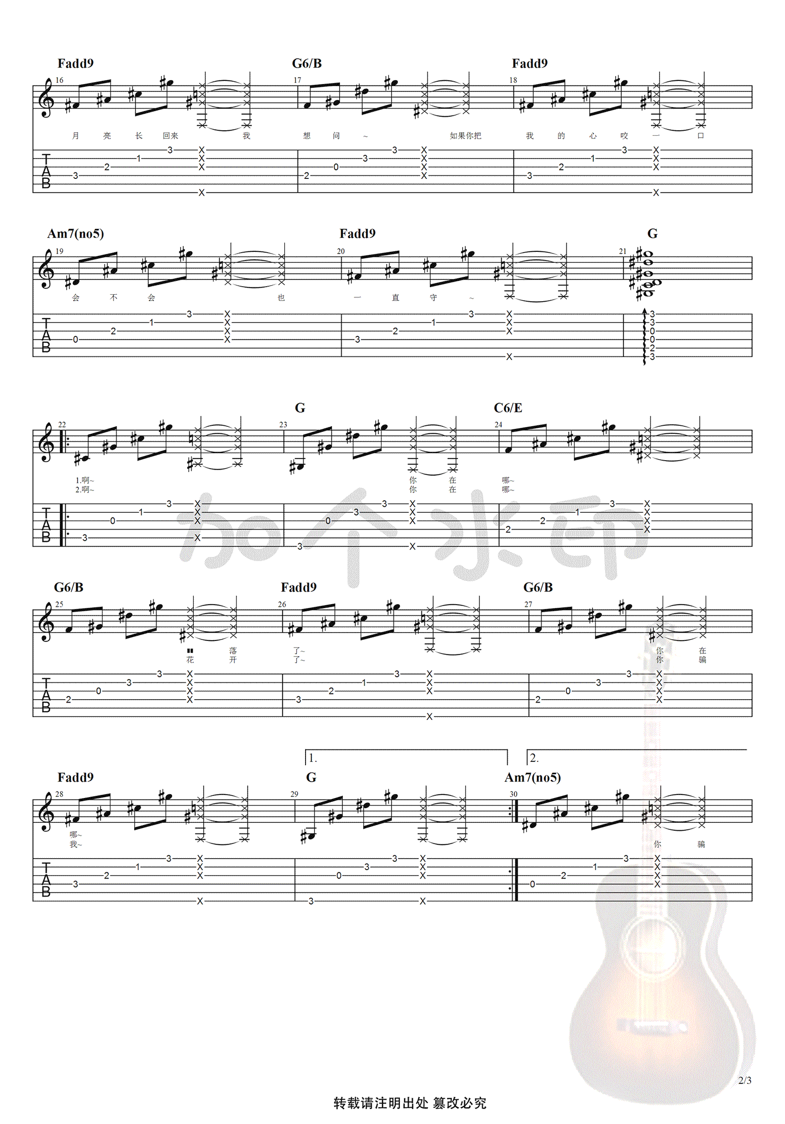 - 抖音歌曲《答案》吉他谱 杨坤VS郭采洁 高清图片谱