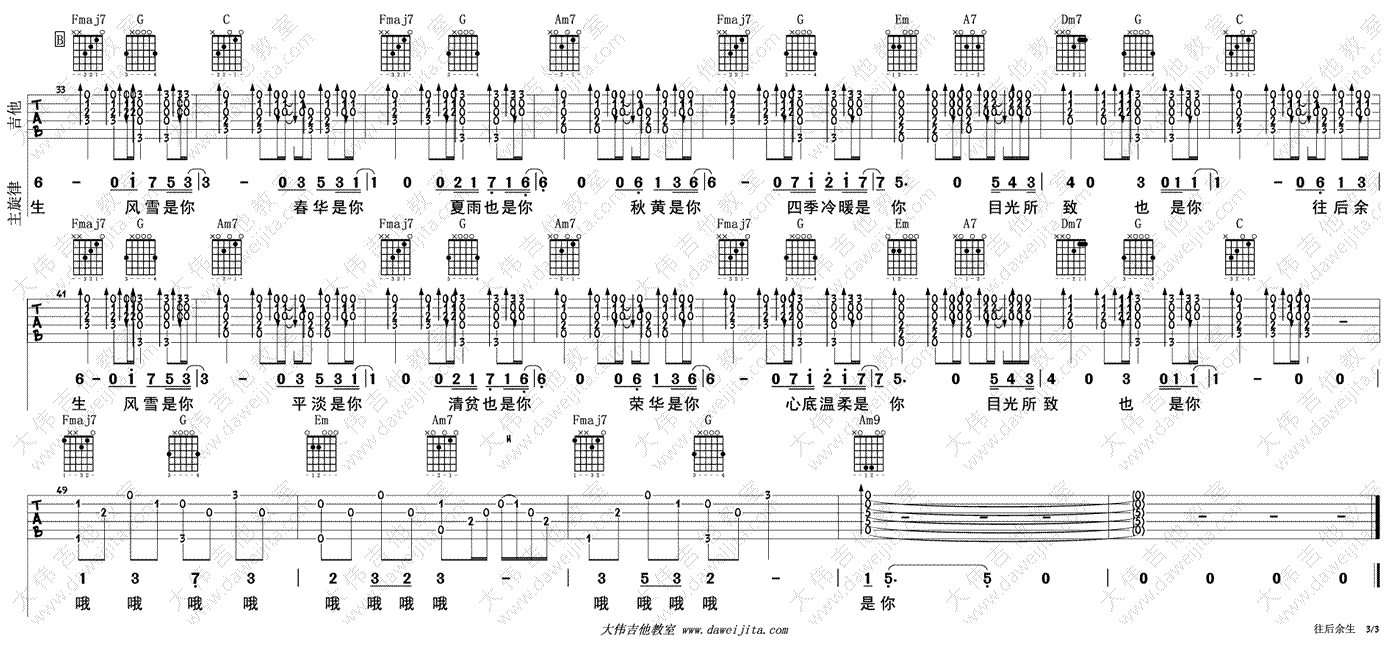 - 往后余生吉他谱 马良 C调指法六线谱 吉他教学视频