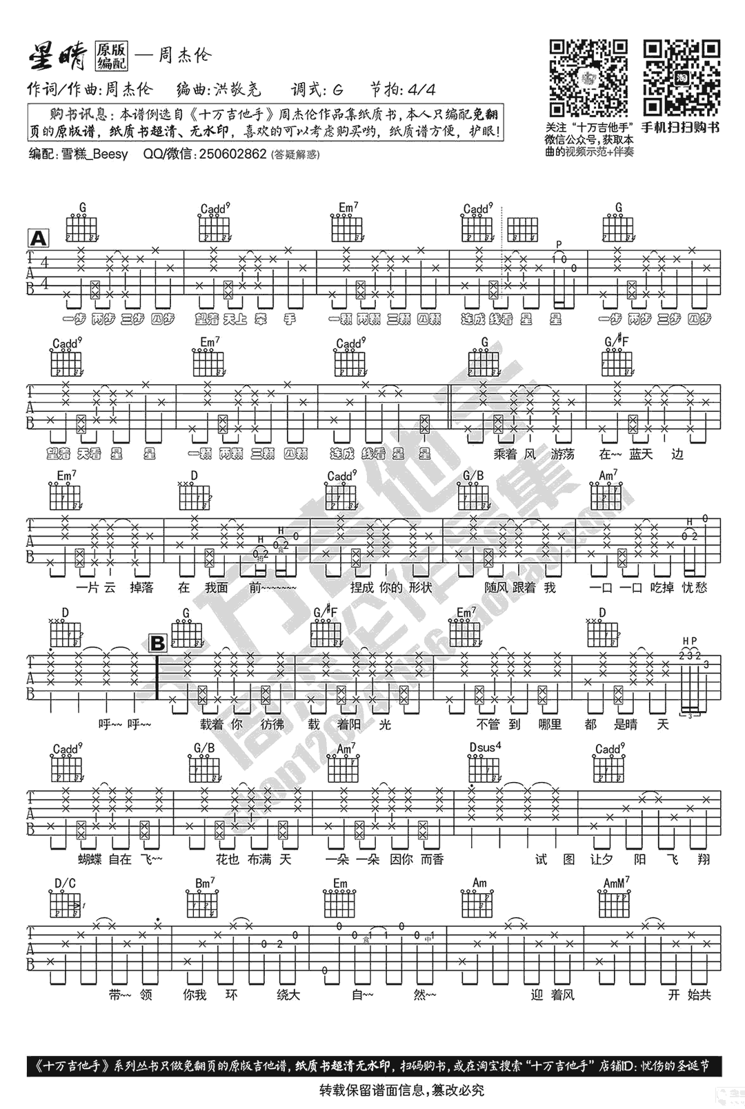 - 周杰伦 等你下课吉他谱 G调弹唱谱 高清六线谱
