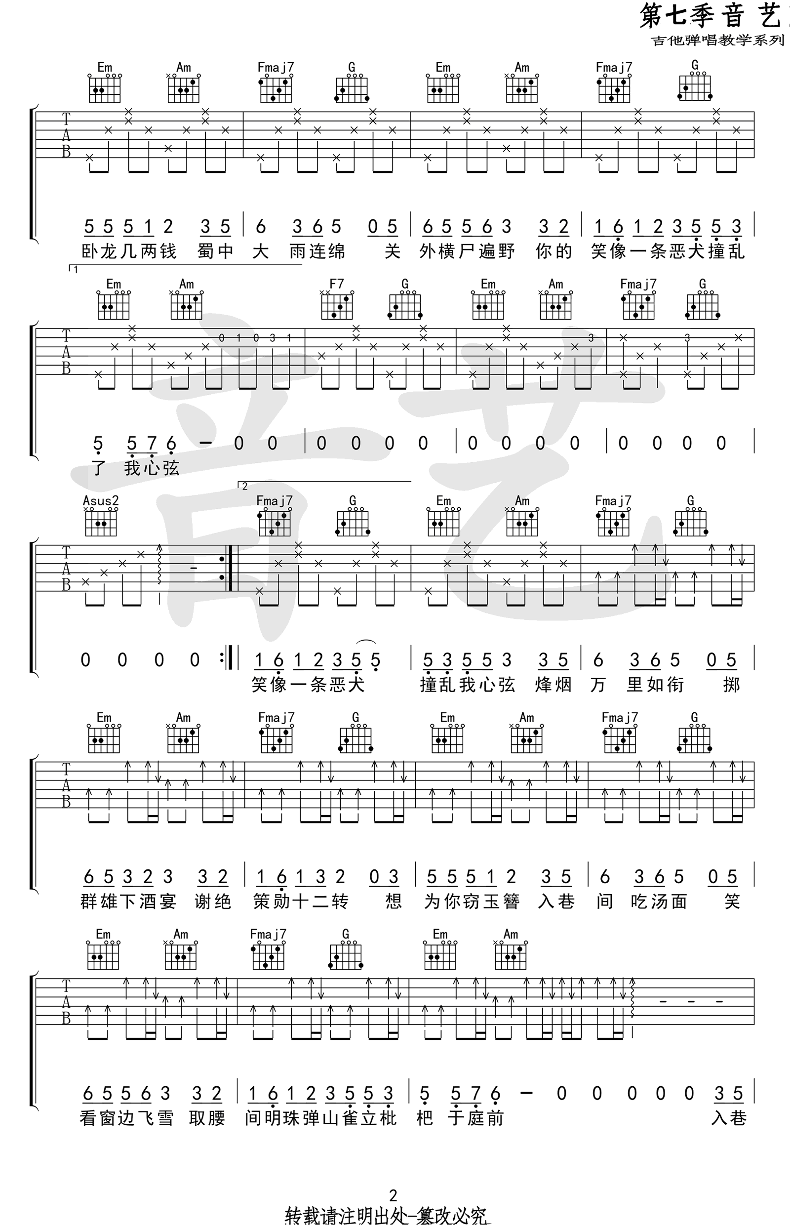 - 云烟成雨吉他谱 C调弹唱谱 房东的猫 六线谱高清版