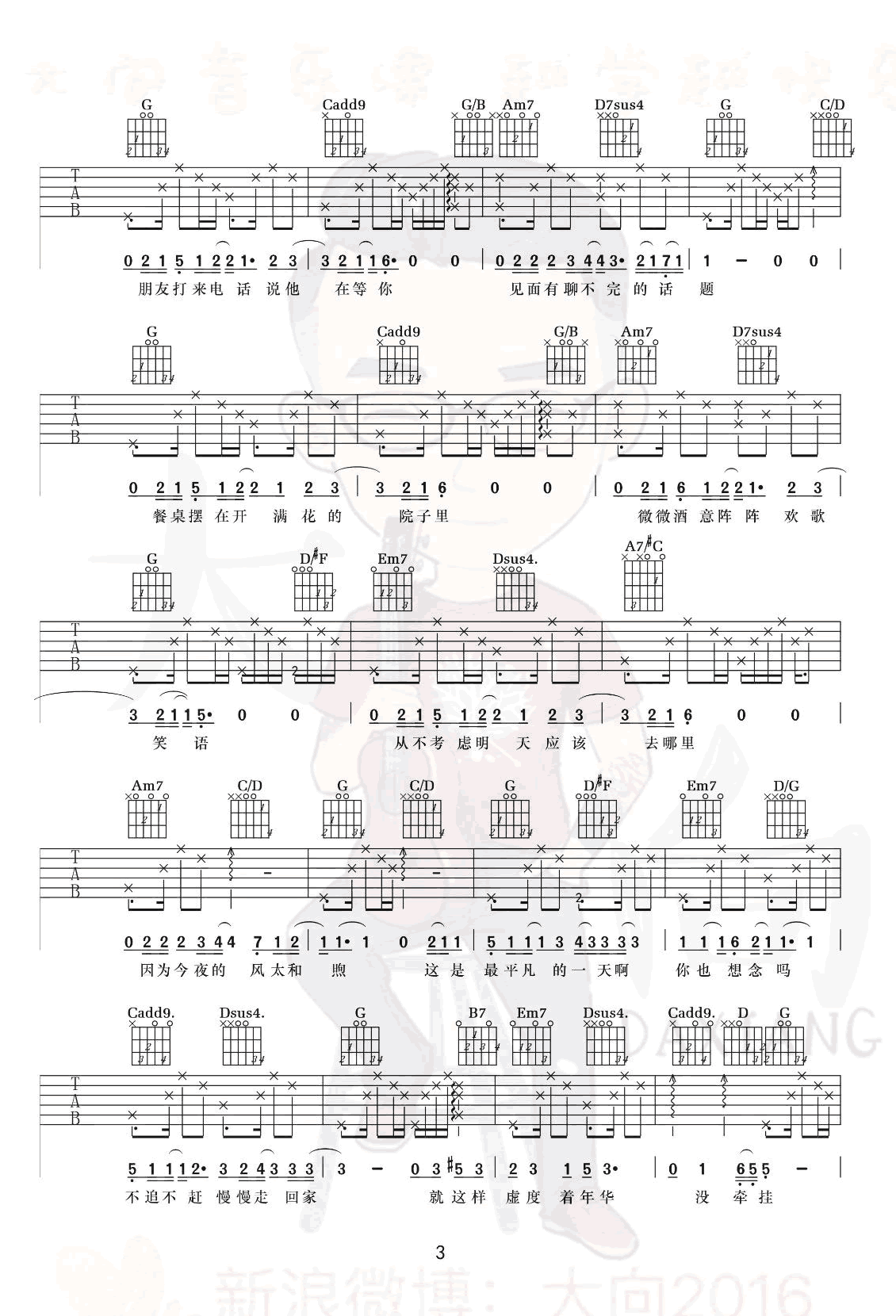 - 盛夏吉他谱 毛不易 G调弹唱谱 高清图片六线谱