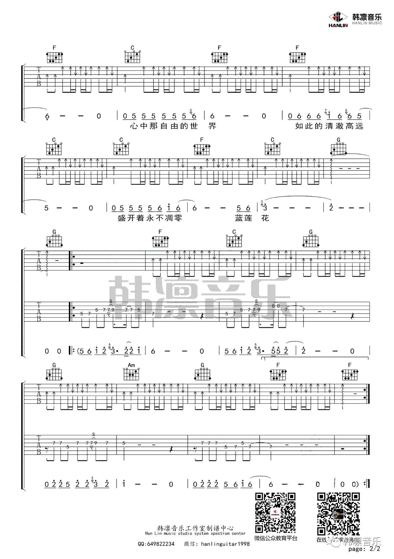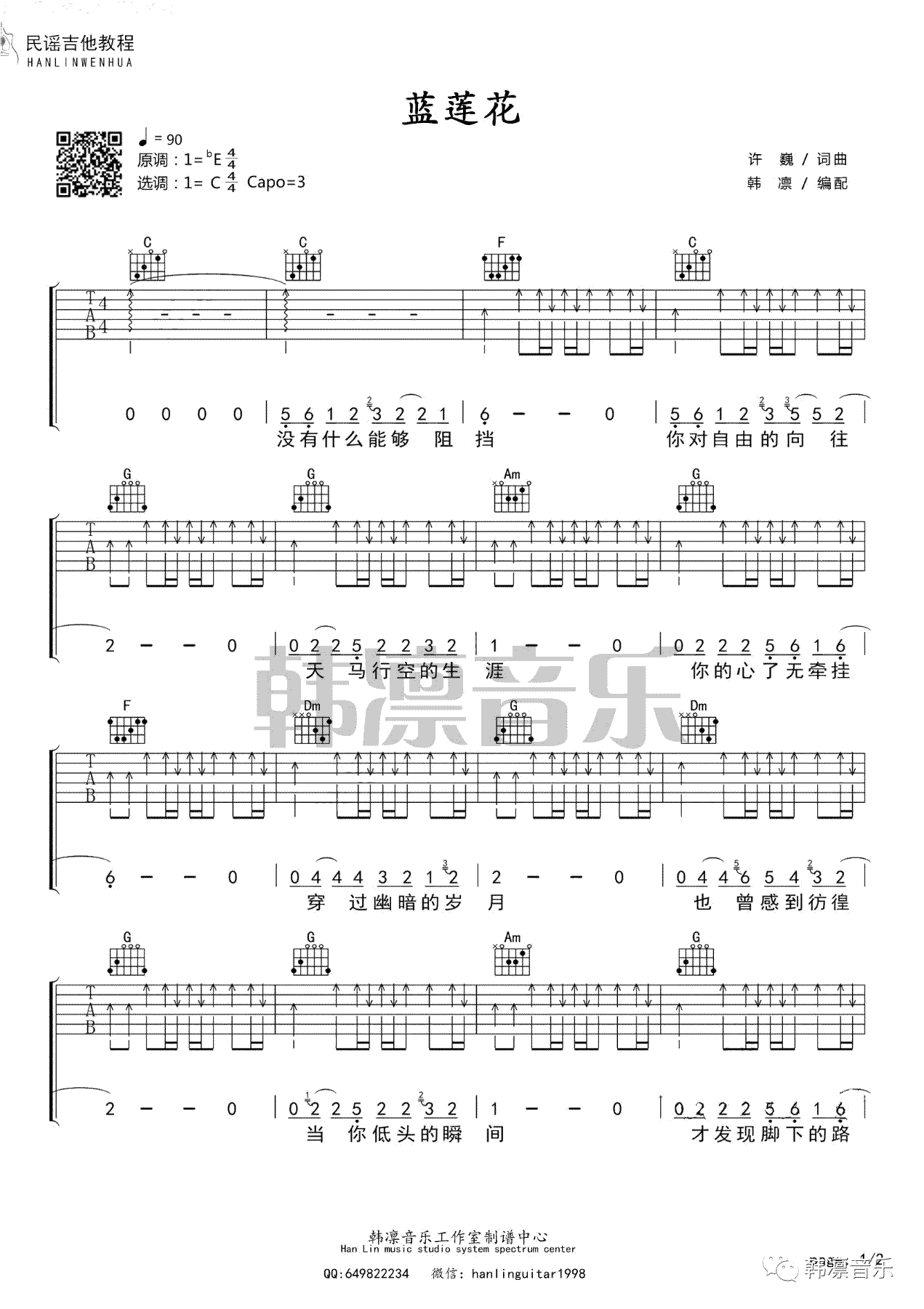 - 蓝莲花吉他谱_C调弹唱谱高清版_许巍
