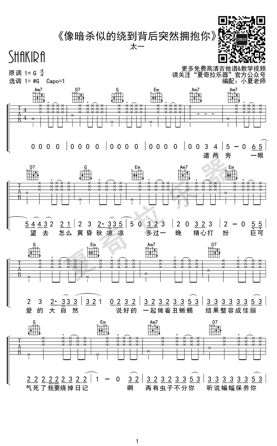 - 像暗杀似的绕到你背后突然拥抱你吉他谱_太一_弹唱六线谱
