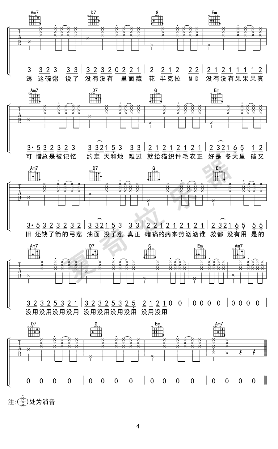 - 岁月神偷吉他谱_金玟岐_G调_弹唱六线谱
