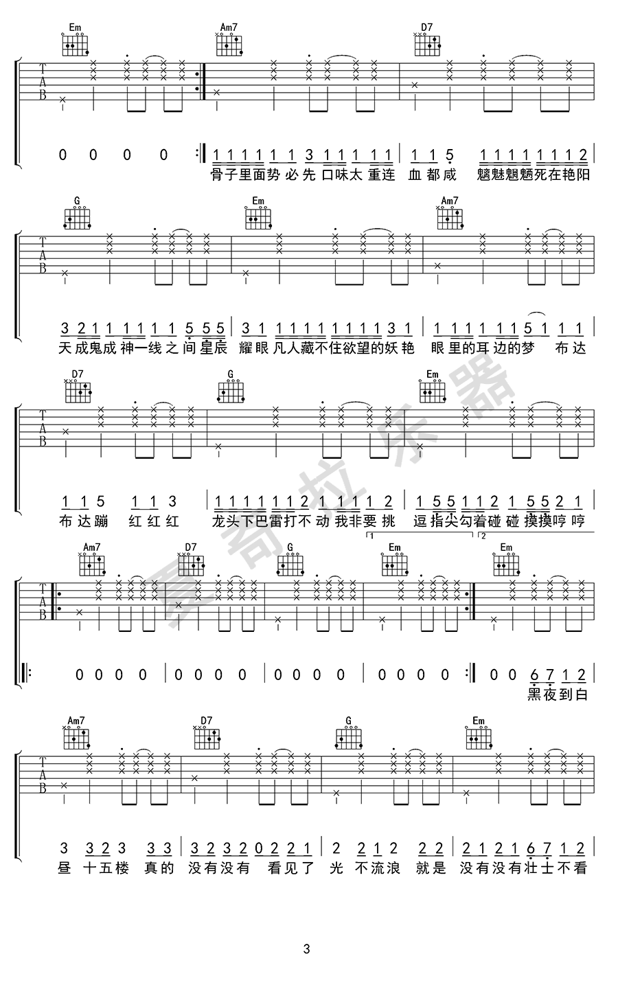 - 你的姑娘吉他谱_隔壁老樊_C调_高清弹唱谱