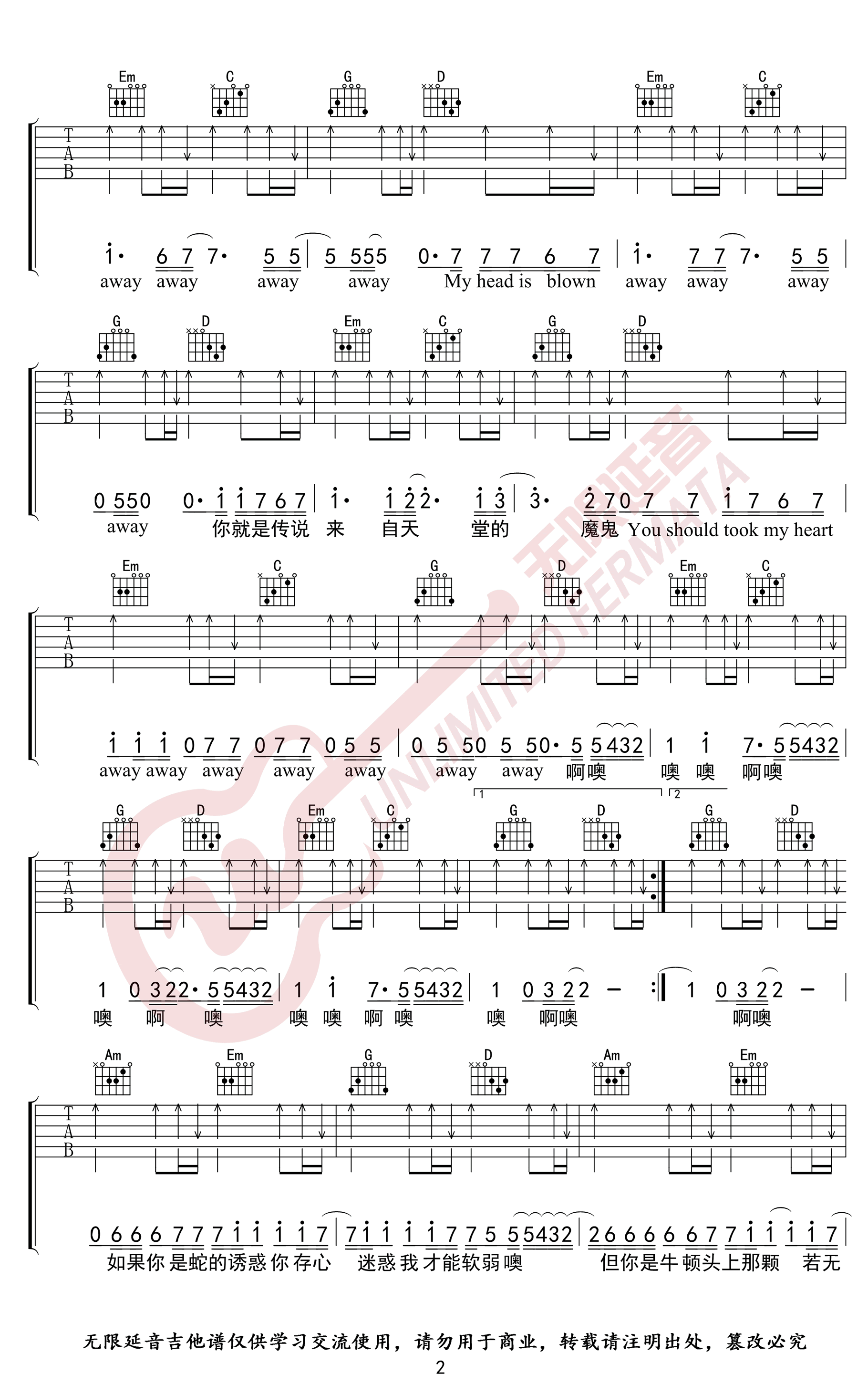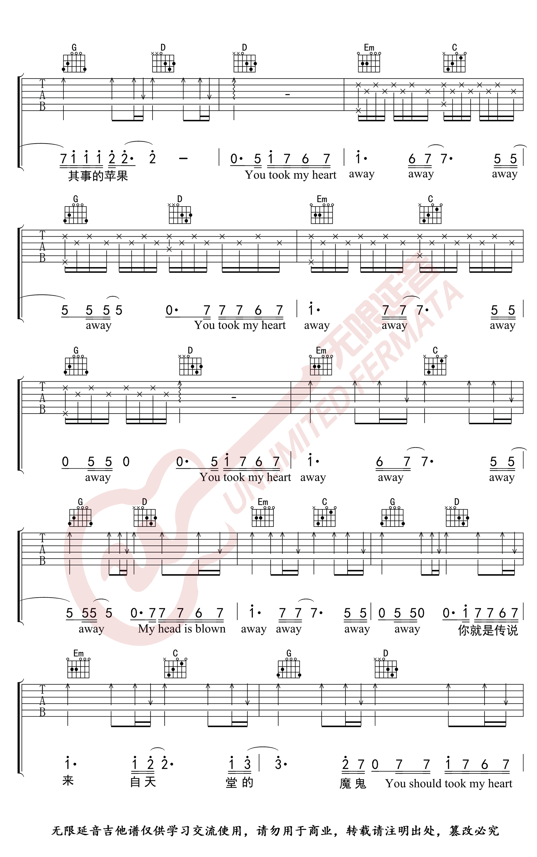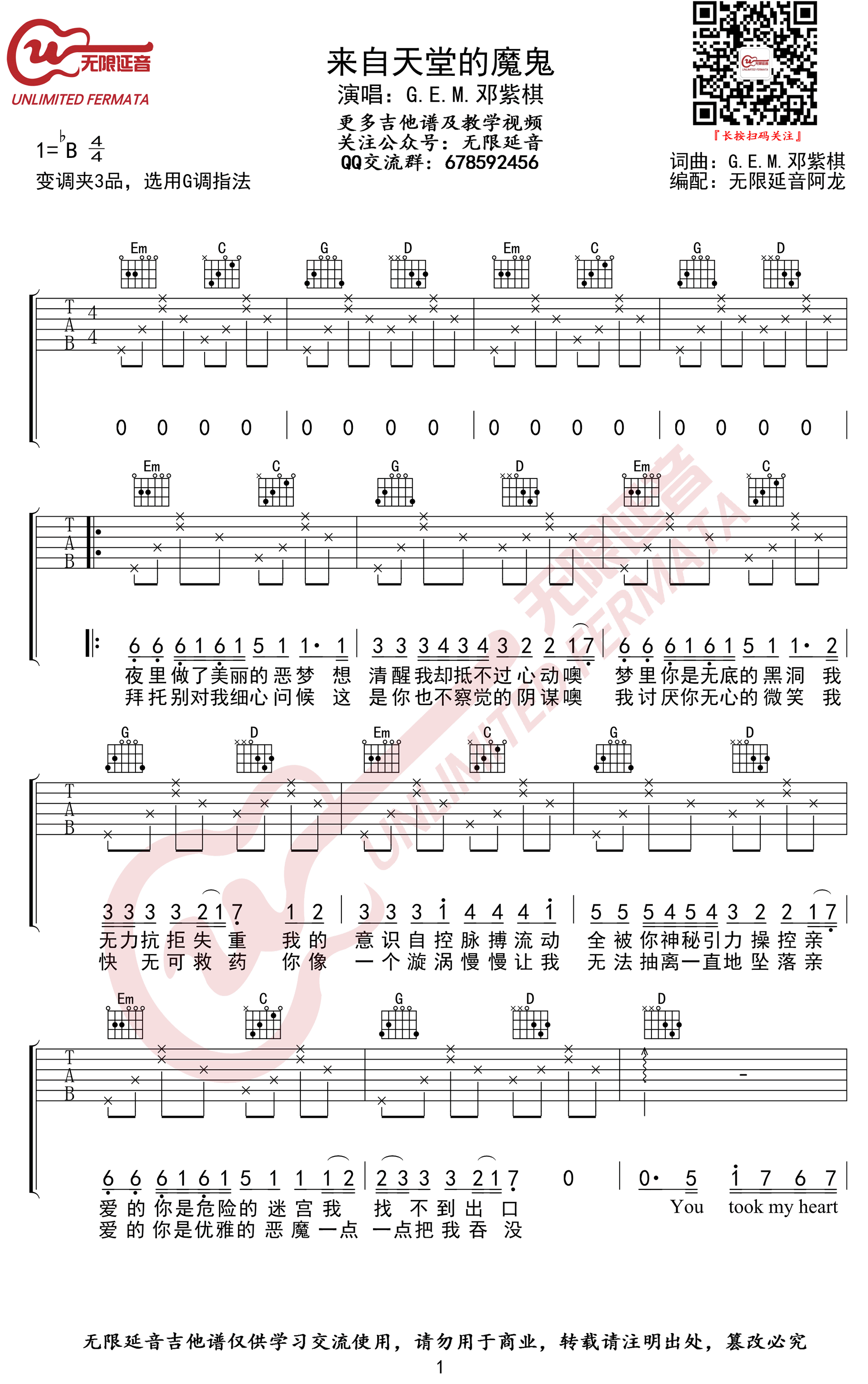 - 来自天堂的魔鬼吉他谱_G调_邓紫棋_高清图片谱