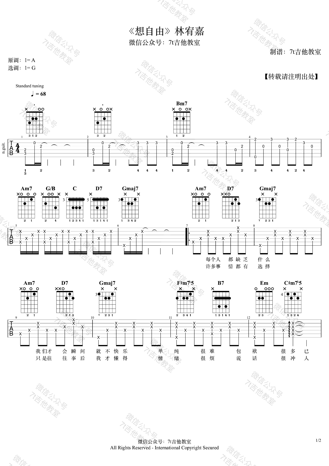 - 想自由吉他谱_林宥嘉_G调_吉他演示视频