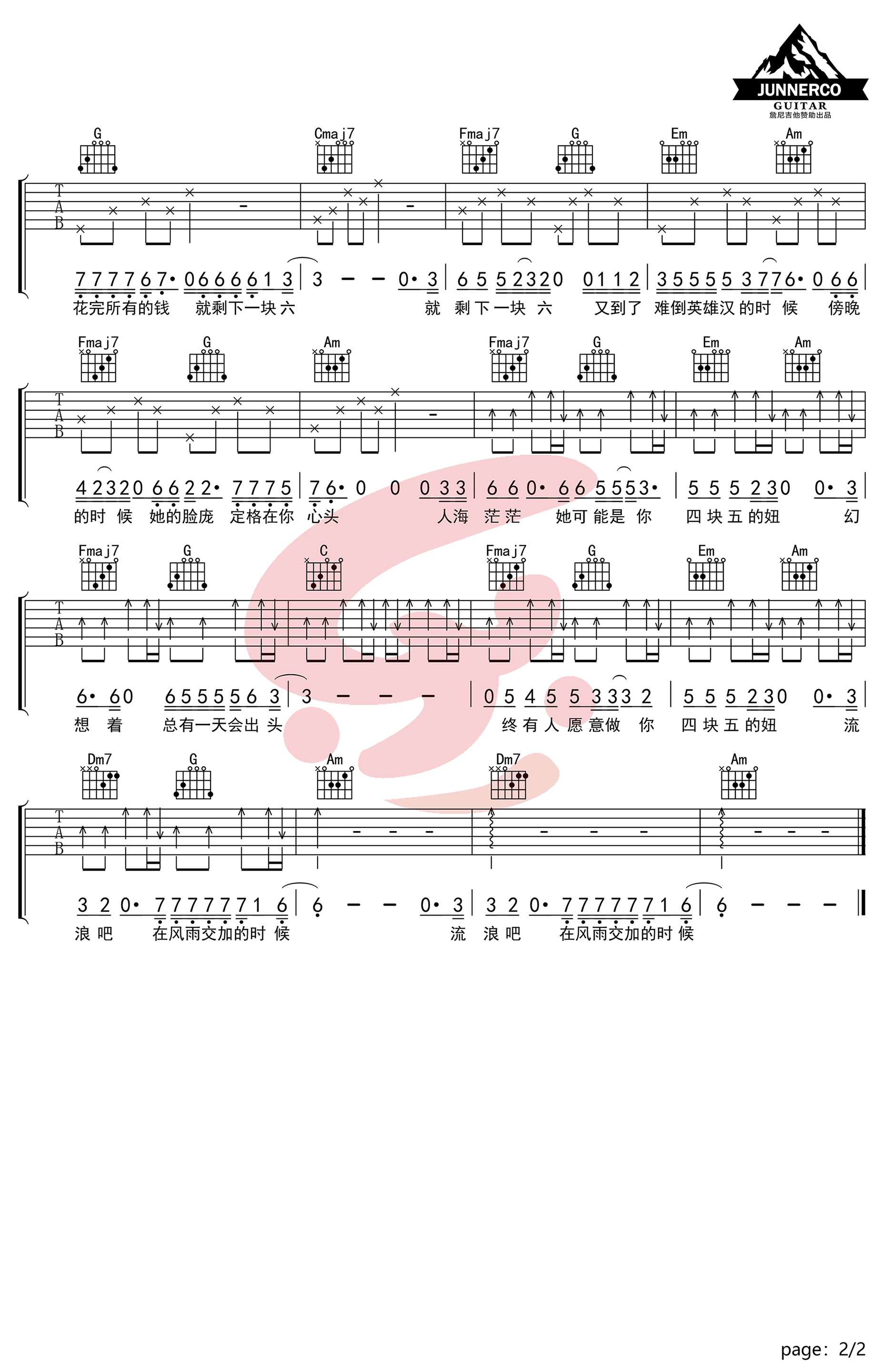 - 四块五吉他谱_隔壁老樊《四块五的妞》六线谱_C调指法