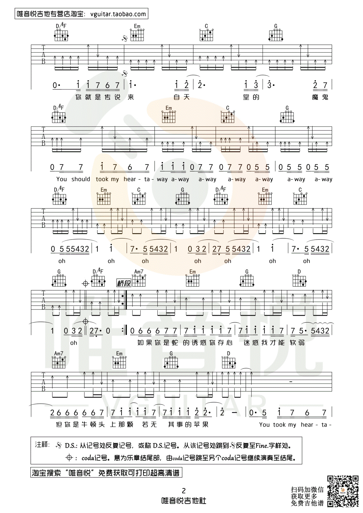 - 来自天堂的魔鬼吉他谱_G调_邓紫棋_高清图片谱