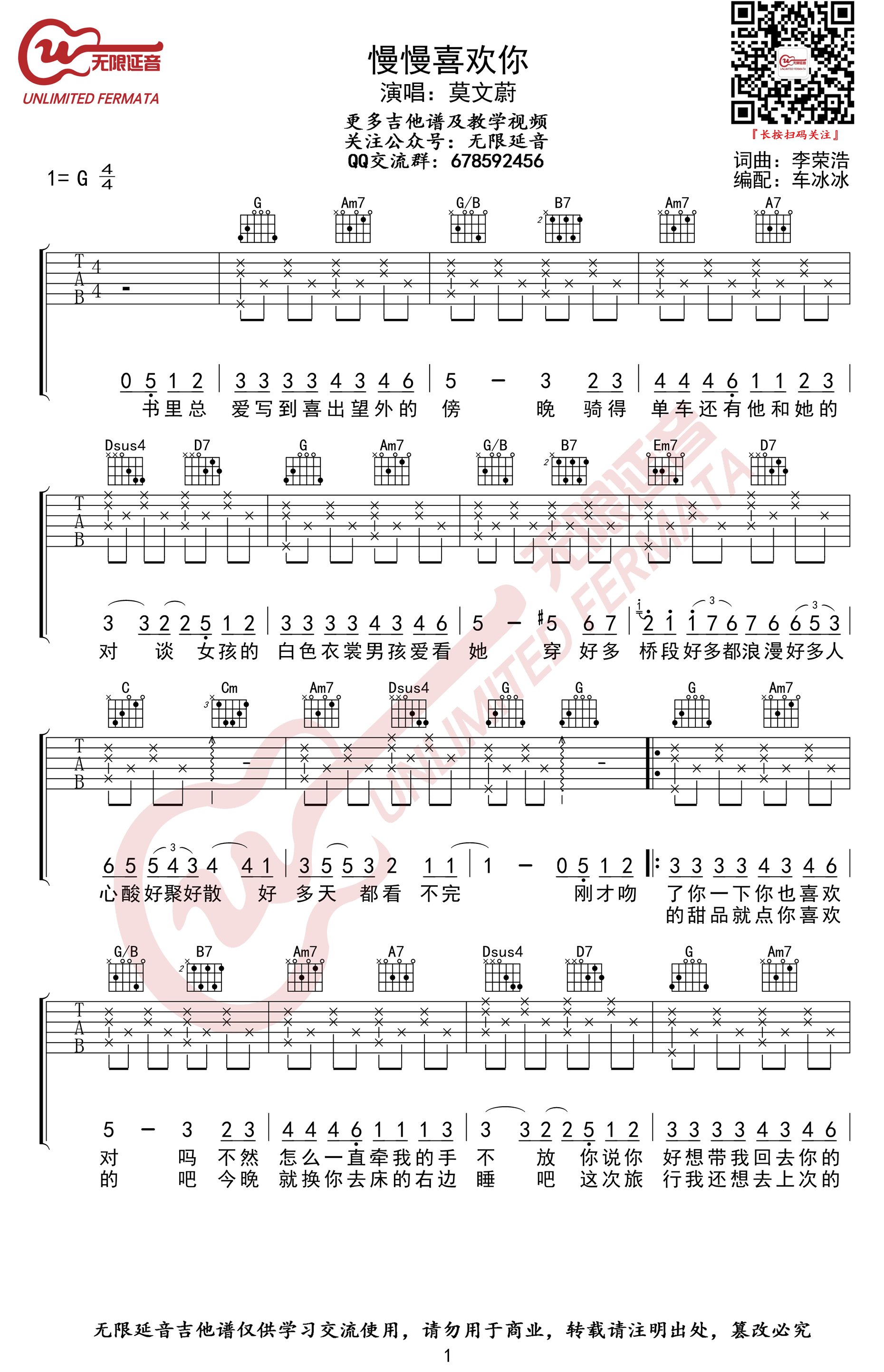 - 慢慢喜欢你吉他谱_莫文蔚_慢慢喜欢你六线谱_高清弹唱谱