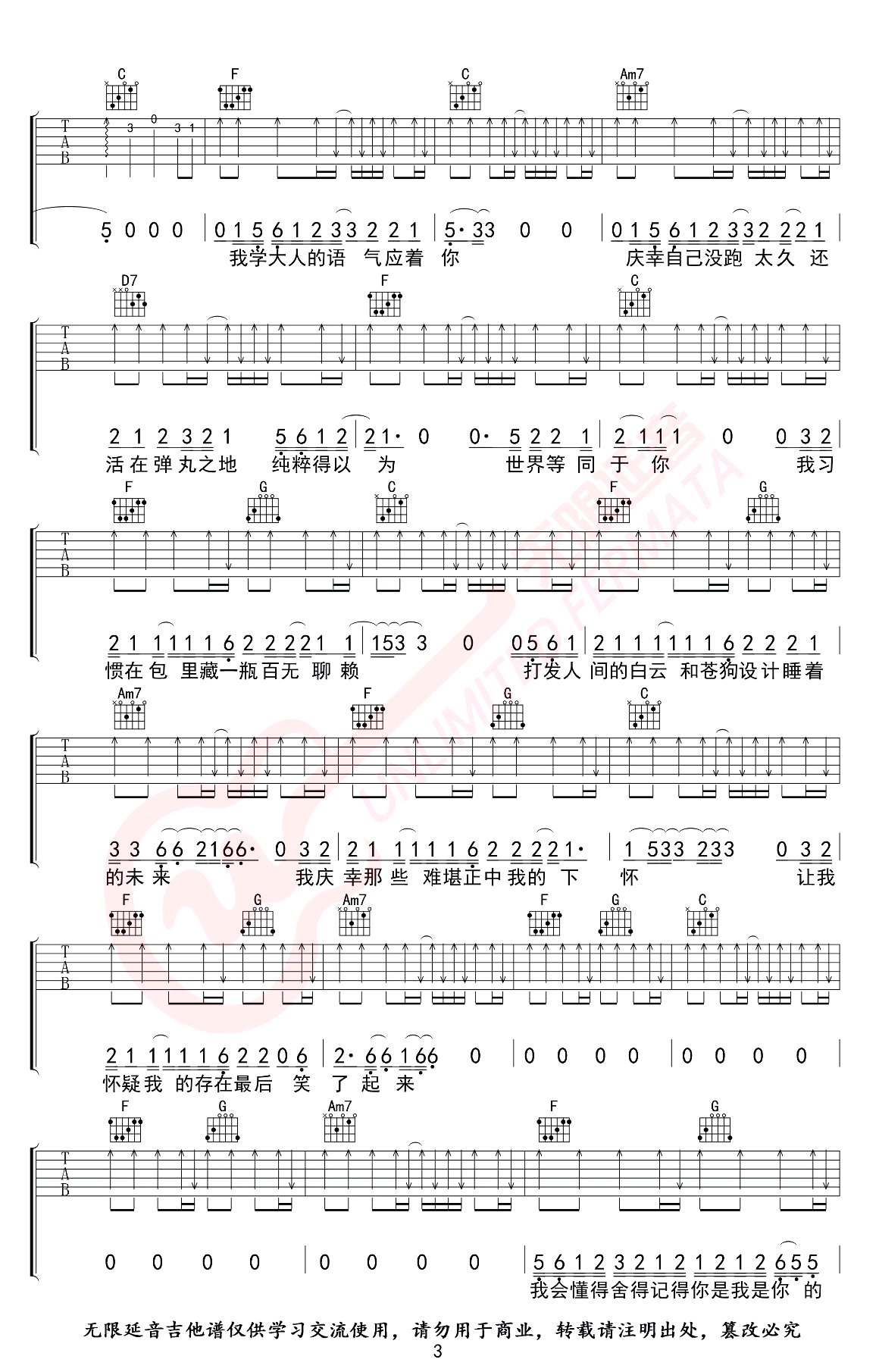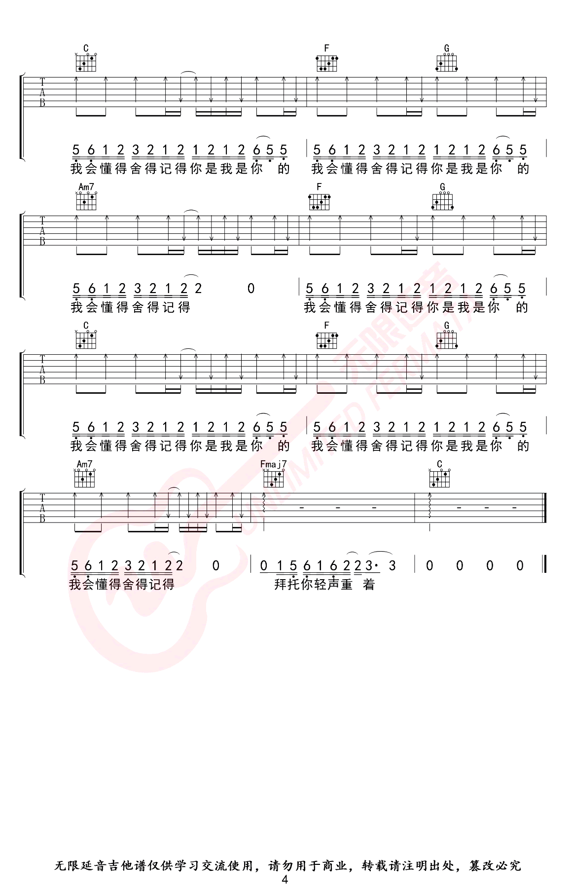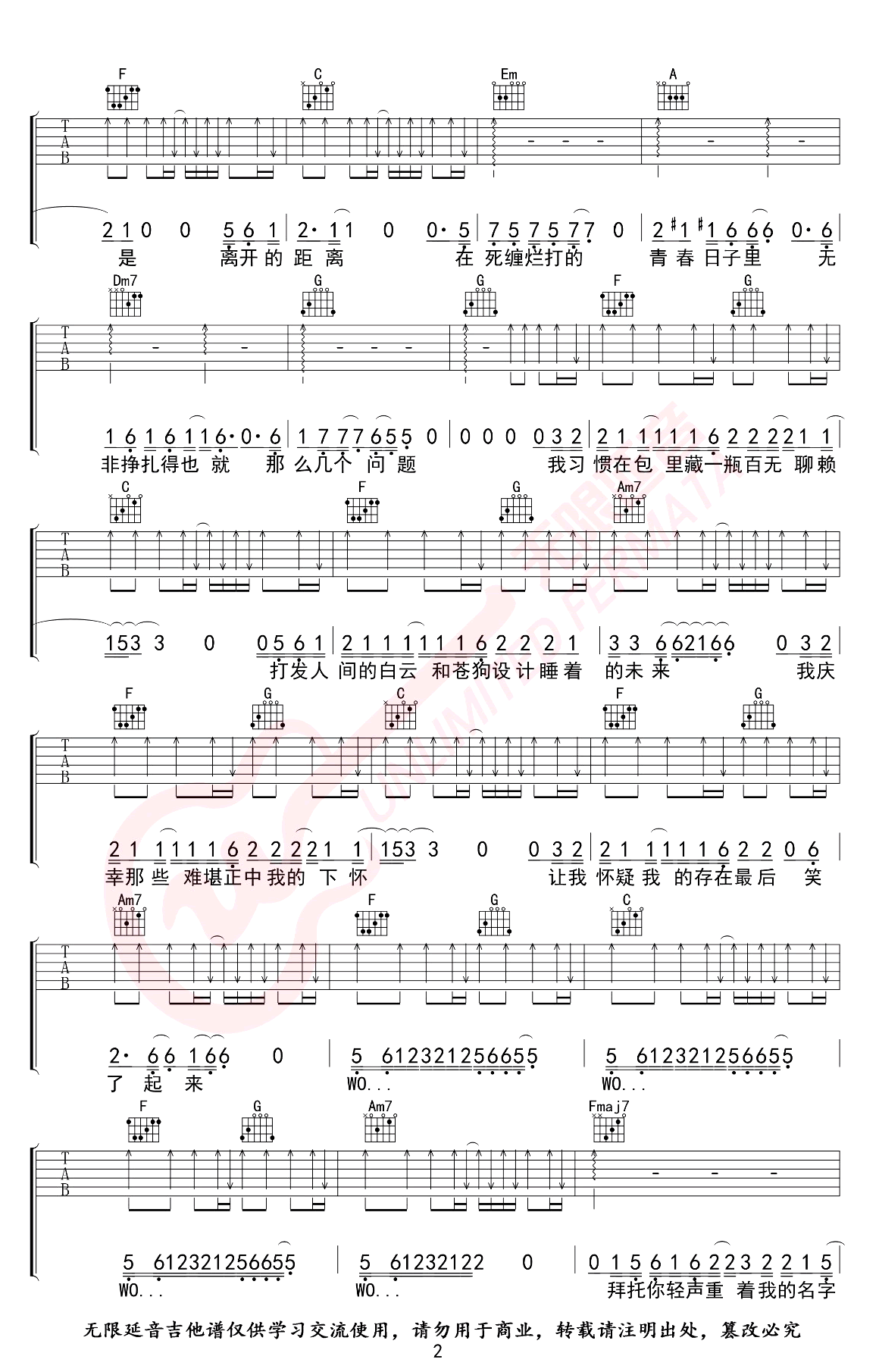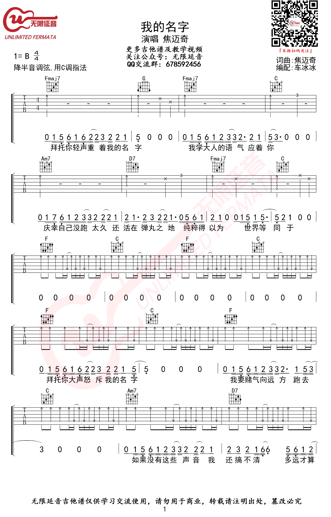 - 焦迈奇《我的名字》吉他谱_C调_弹唱六线谱