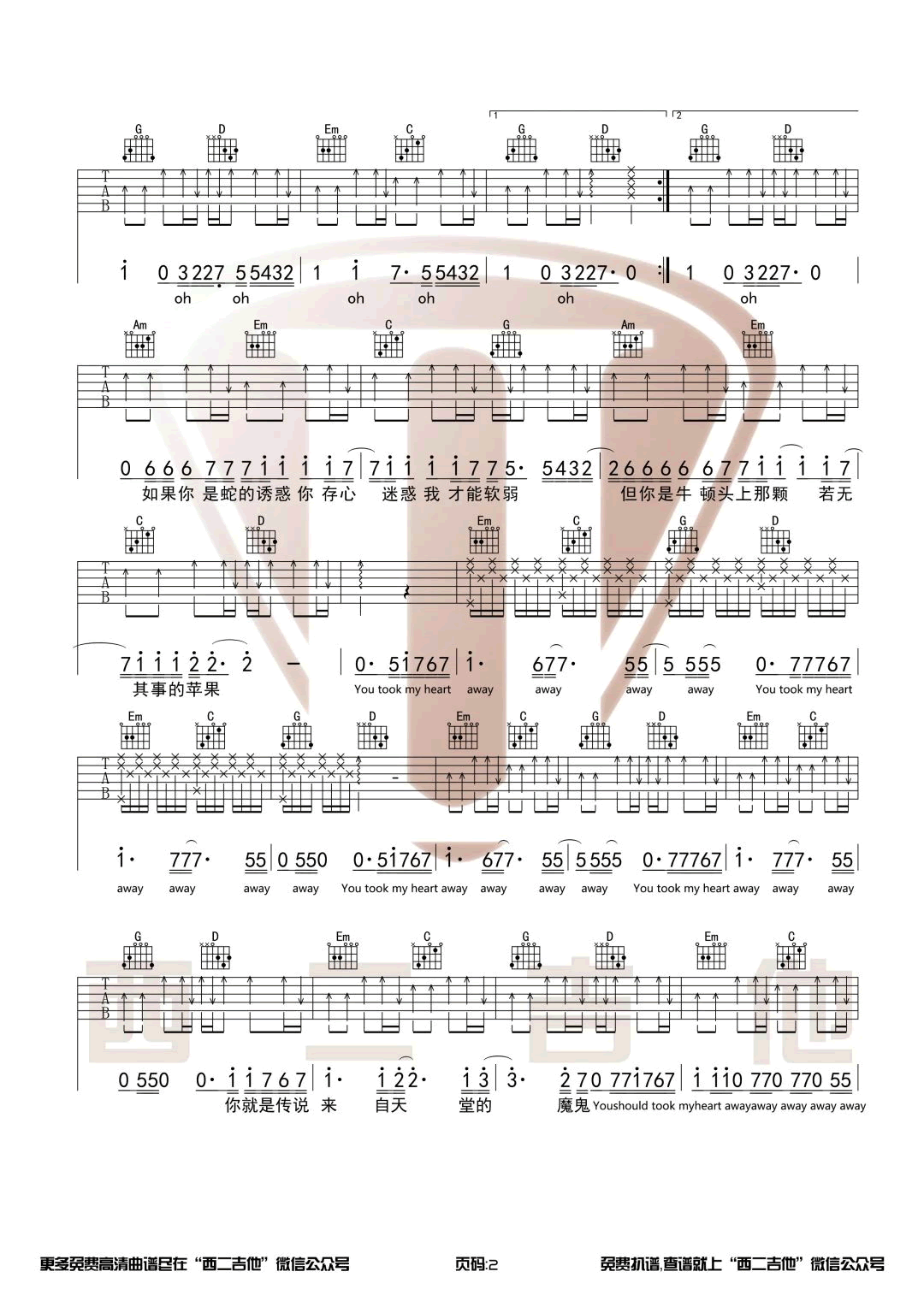 - 来自天堂的魔鬼吉他谱_G调原版_弹唱六线谱