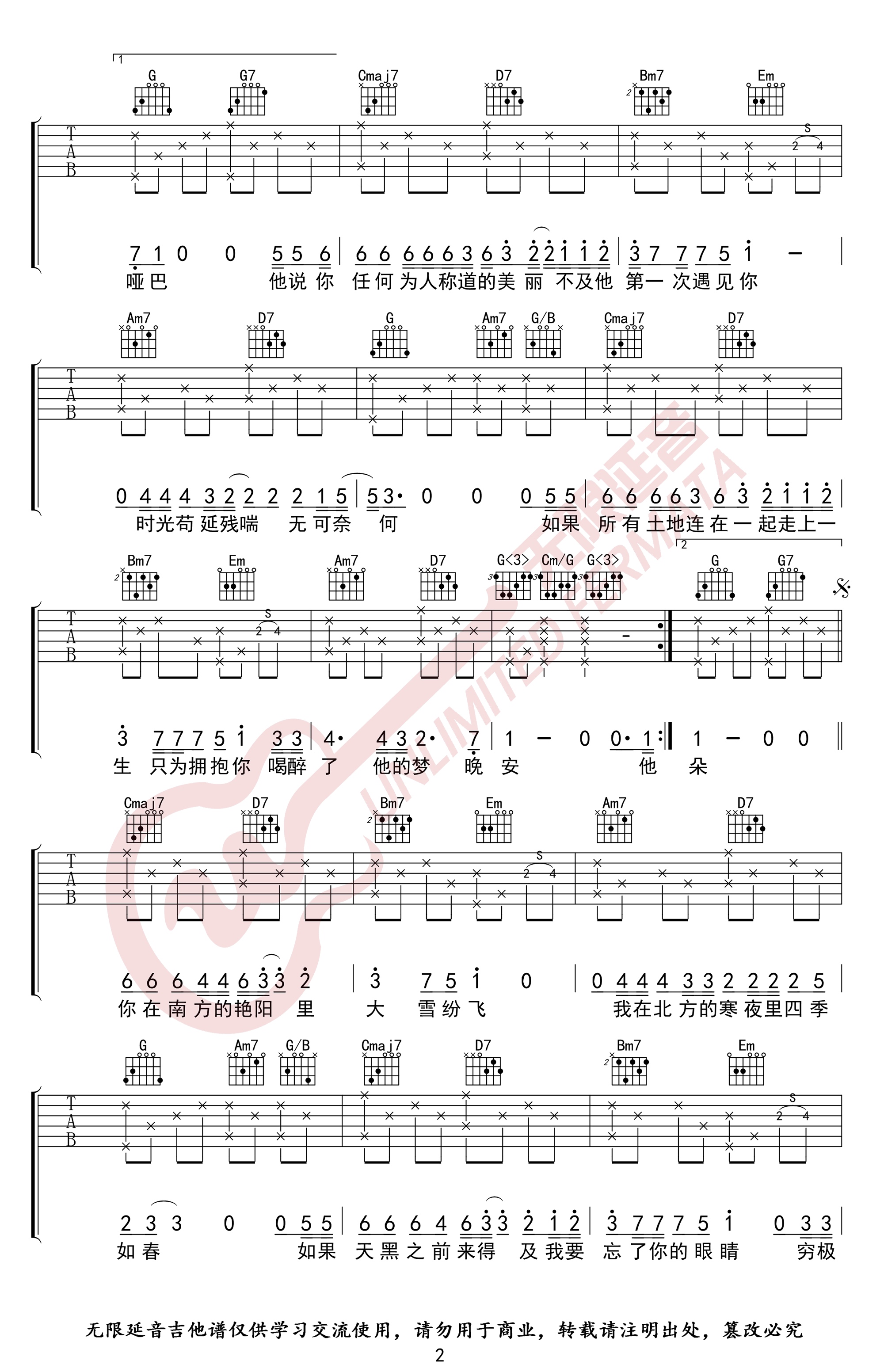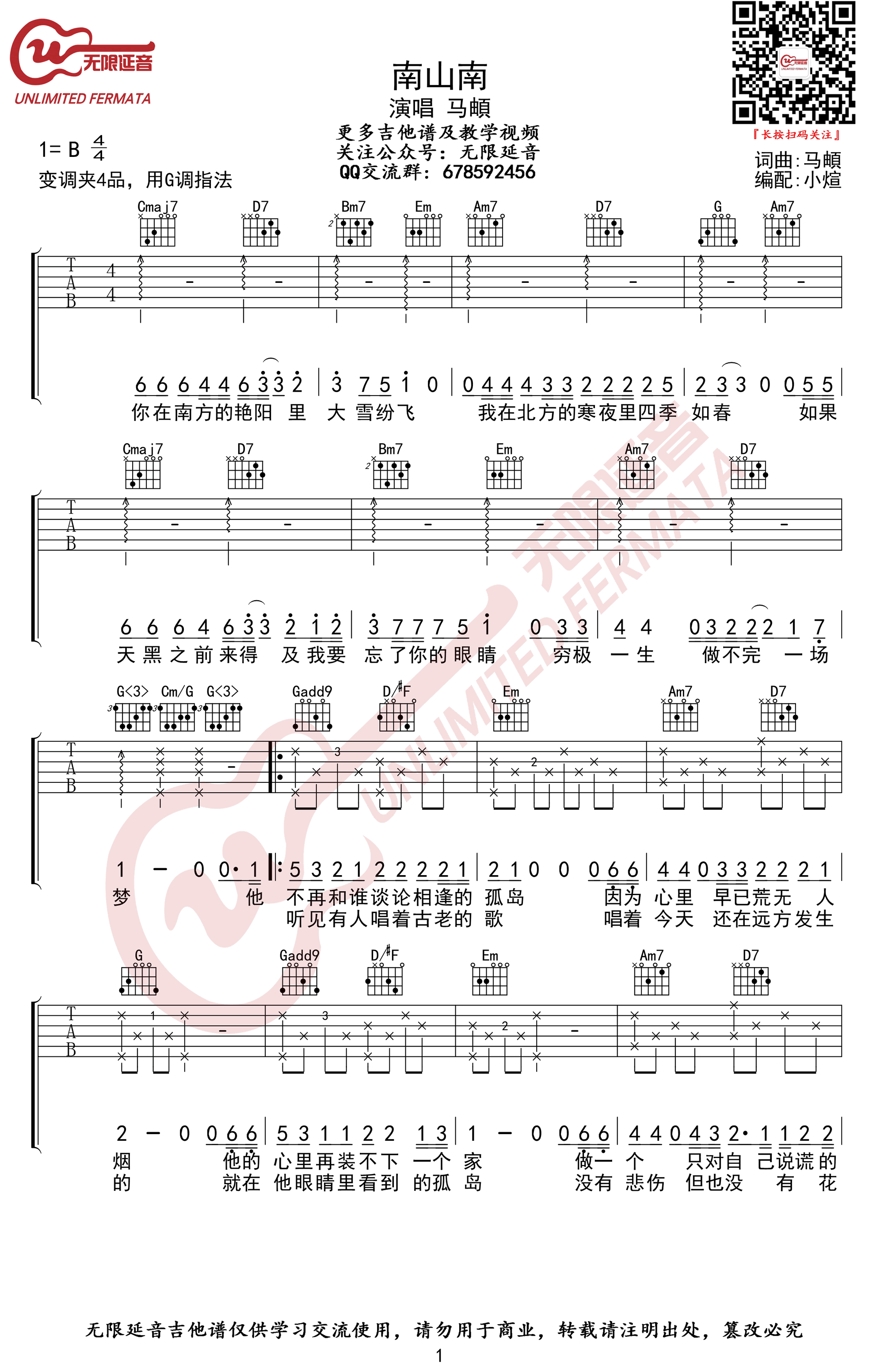 - 南山南吉他谱 马頔 G调弹唱谱 高清图片谱